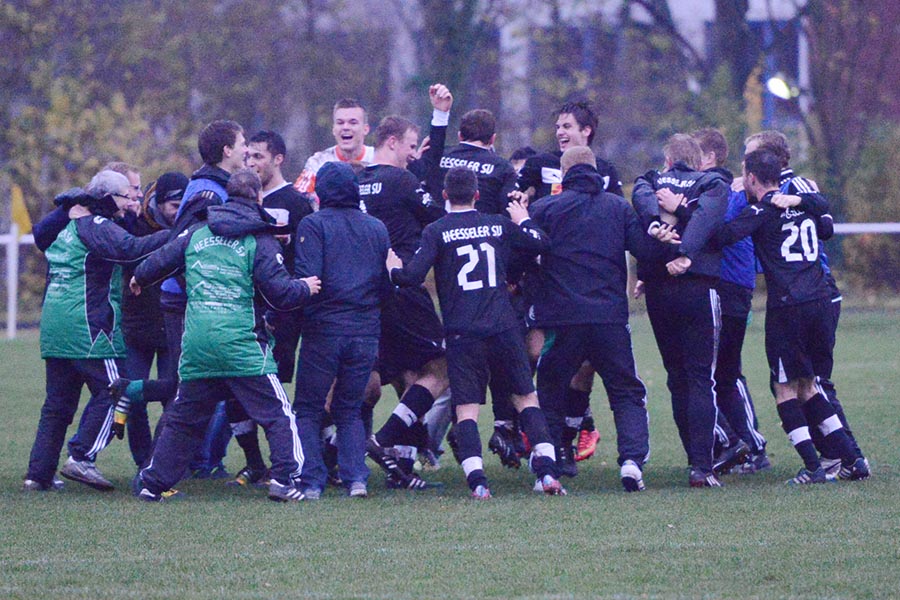 Spätestens jetzt hielt es einen keinen Zuschauer mehr auf dem Sitz: Die Burgdorfer, die nach vergebenen 2:0-Führung ihr Team anfeuerten, um hier nicht noch eine Niederlage zu kassieren und die Heesseler, die nun lautstark ihr Team anfeuerten, die drei Punkte mitzunehmen. Sie mussten nicht lange warten: Die TSVer wurden beim 2:3 regelrecht überrannt. Waren sie zunächst noch bei einer Ecke am HSV-Tor im Ballbesitz, so brauchte es zwei Stationen, bis zum 2:3-Endstand: Die Ecke wurde abgewehrt, landete bei Niklas Rohden kurz vor der Mittellinie, der den Ball auf der rechten Seite an zwei Gegenspielern vorbei trieb und dann nach links zum mitgelaufenen Kesip Caran passte, der nur noch einschieben musste (81.).