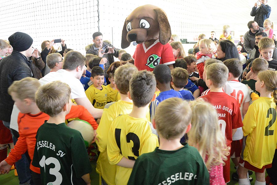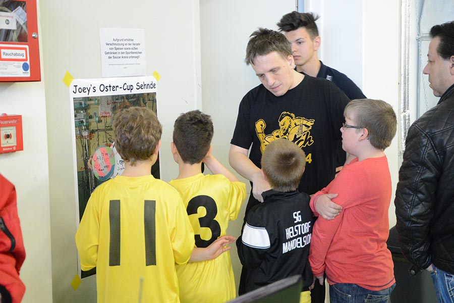 Zur großen Überraschung der Nachwuchskicker machte auch 96-Maskottchen Eddi einen Besuch beim "Joey´s Oster Cup". Schnell wurde er für Autogramme und Fotos umlagert. Beim Turnier stellte sich folgende Rangfolge ein: 1. Fortuna Sachsenross II, 2. Fortuna Sachsenross I, 3. SC Langenhagen, 4. VfB Wülfel, 5. SG Haimar/Dolgen-Rethmar, 6. SpVg Laatzen, 7. BSV Gleidingen, 8. Heesseler SV, 9. SG Mandelsloh A, 10. TSV Wennigsen, 11. SV 06 Lehrte, 12. SG Mandelsloh B.