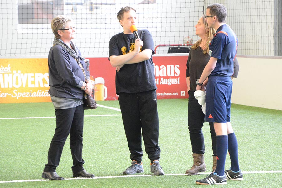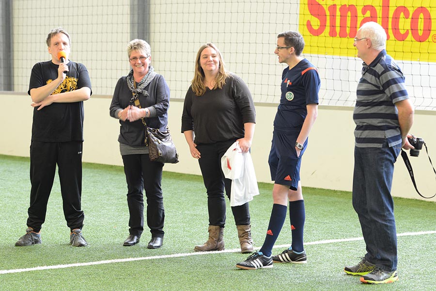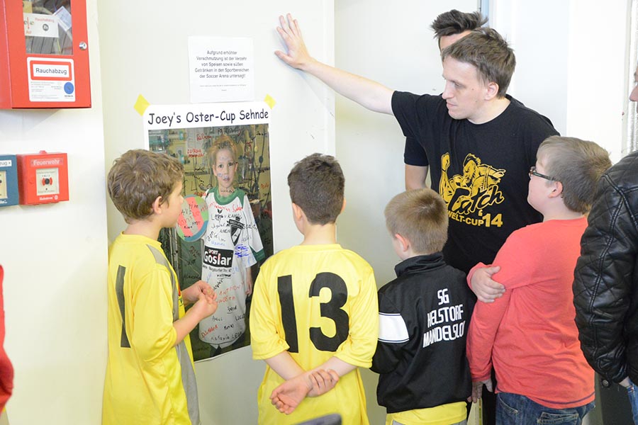 Große Unterstützung hierbei hat die Familie am heutigen Sonntag hautnah erfahren. Sabrina Upmeier hatte sich extra die Zeit genommen, in die Soccer Arena zu kommen, stand statt neben seinem Krankenbett dafür im ständigen Kontakt mit ihrem Sohn: "Er will unbedingt wissen, wie es heute war", berichtet sie. Er selbst konnte nicht kommen: Nach drei großen Operationen und weiteren kleineren Eingriffen darf er das Krankenhaus nicht verlassen. Umso schöner wusste Lars Klingenberg nach dem Turnier zu berichten, das "die jungen Fußballer nach Joey gefragt haben, wie es ihm geht". Zudem konnte er 464,10 Euro an die Familie als Erlös aus dem Eintrittskartenverkauf, der Verlosung und dem Spendenschwein direkt nach dem Turnier an die Familie übergeben. Ein Poster, auf dem die Teilnehmer unterschrieben haben, wird Joey zudem noch übergeben.