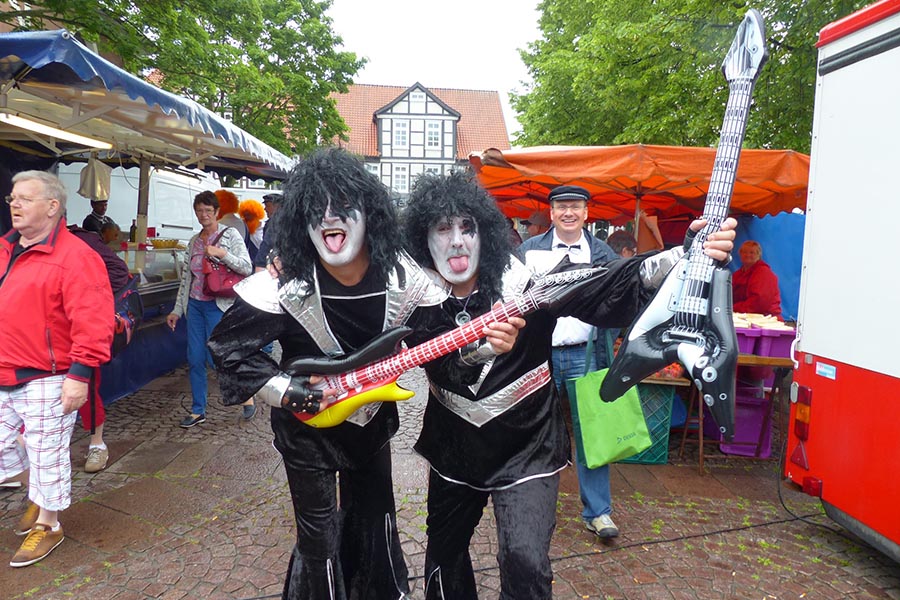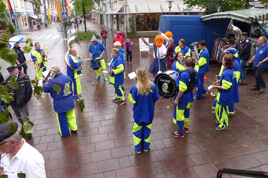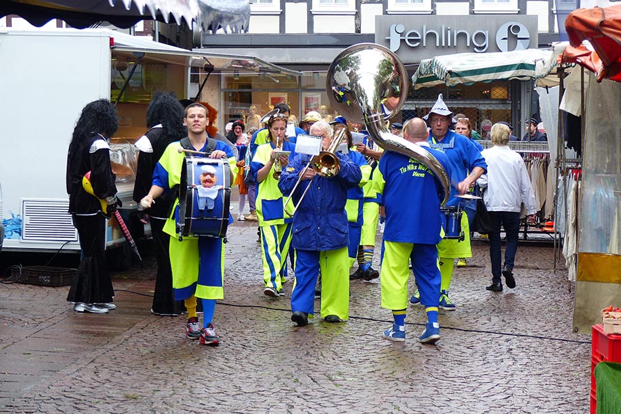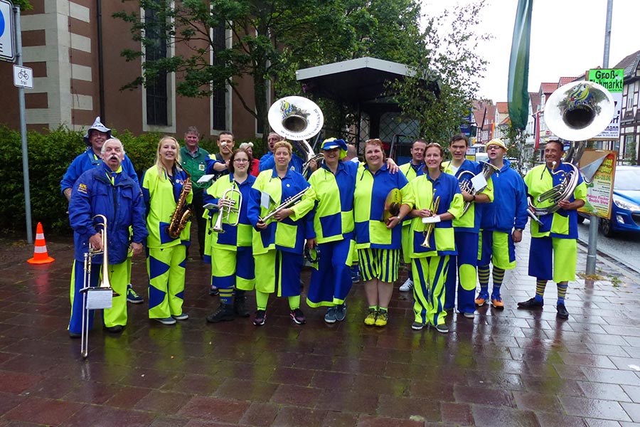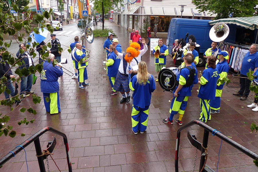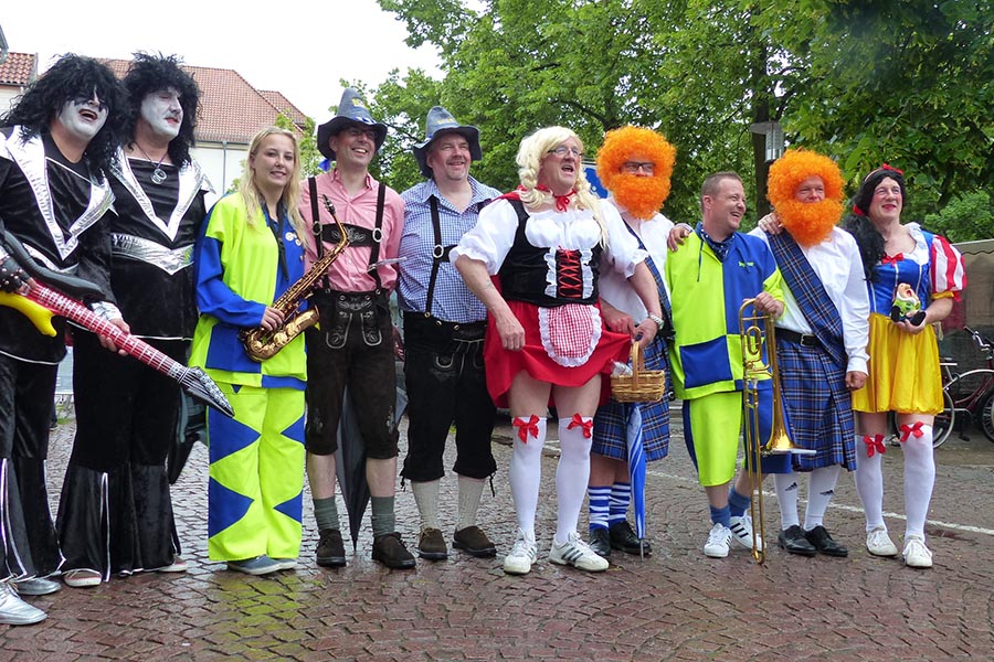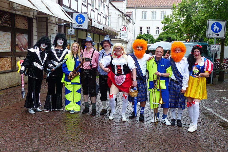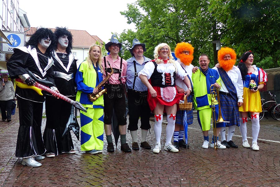 Zwischenzeitlich waren die SpaßmusikerInnen der holländischen Truppe "Tis nix wut nix" in Burgdorf eingetroffen und zu dem fröhlichen Trupp der ‚Junggesellen auf den Wagen gestiegen. Die folgende Sammeltour führte dann musikalisch immer wieder angekündigt und begleitet über verschiedene Stationen im Stadtgebiet mit dem Ziel Spittaplatz und Wochenmarkt um etwa 9:30 Uhr.