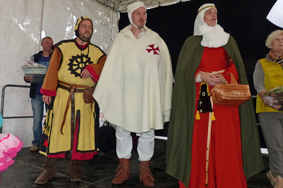 Ungeschlagen und mit dem ersten Platz geehrte wurde Freifrau Margret (von) Kühnemund (und nicht wie zunächst leider falsch berichtet "Kümmermund", die Red.), die es sich leisten konnte, ihren Preis, einen überbordenden Geschenkkorb, nicht selbst, sondern von ihrem Gesinde, nämlich von Magd Silke und Knecht Wolfgang entgegennehmen und nach Hause tragen zu lassen.