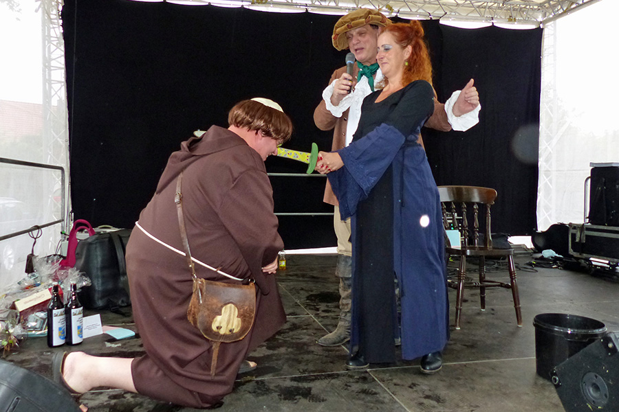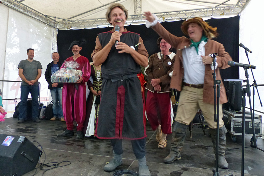 Die noch ausstehende Prämierung der schönsten Kostüme wurde dann zwar von einsetzendem Nieselregen begleitet, niemand ließ sich aber davon vertreiben, bevor nicht die Preisträger bekannt gegeben und geehrt wurden.