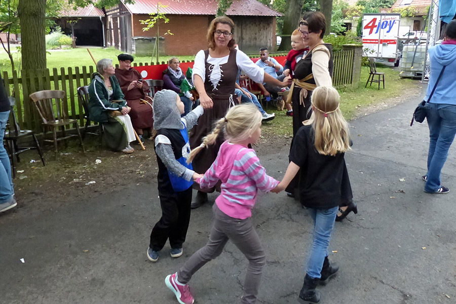 Der Kurzweil und Feierlaune der an den beiden Tagen gut hälftig anwesenden Einwohnerschaft tat dies aber keinen Abbruch, der Sonnabend alleine war schon durch die Wunderlichkeiten der reichlich kostümierten Besucher und der damit verbundenen historischen Atmosphäre, durch die Musik und den nachbarschaftlichen Umgang – in Katensen sind wohl alle Nachbarn – und den gestalteten Festplatz geprägt.