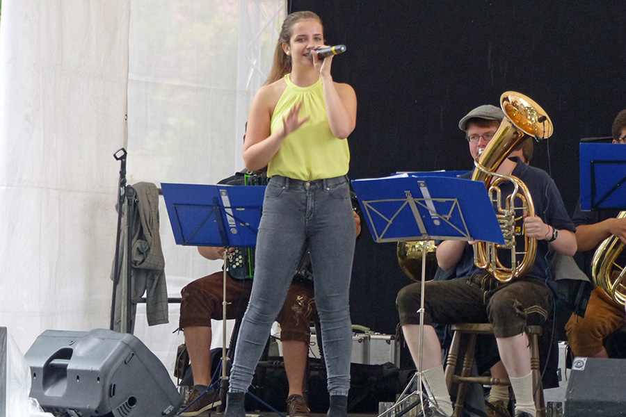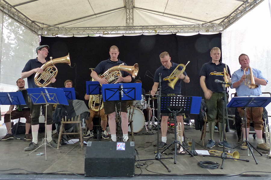 Dann haben die neun Musiker um Frontfrau Sophia Friedrich von "Weseranka", die sich Böhmisch-Mährischer Blasmusik und moderner Unterhaltungsmusik verschrieben haben, ein Musikgenre eingebracht, das zwischen Polka und Helenes "atemlos", arrangiert im besonderen Stil der Musikgruppe, das Publikum am späten Nachmittag schon zu Tanz, Applaus und rhythmischem Klatschen animiert hat, was mit wiederholten Zugabenwünschen belohnt und denen auch entsprochen wurde.
