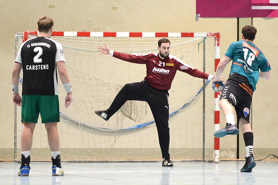 Dritter Heimsieg in Folge, aus den letzten 6 Spielen 5 Siege geholt: Die Handballer der Turnerschaft Großburgwedel (TSG) sichern in der 3. Liga Nord den 3. Tabellenplatz und bleiben die Überraschungsmannschaft dieser Saison. Am heutigen Sonnabend hat das Team um Trainer Jürgen Bätjer souverän gegen den Oranienburger HC 29:24-(15:13) gewonnen.. Ob es an dem Umstand lag, dass an diesem Wochenende die Weihnachtssaison beginnt: Nur 175 Zuschauer wollten die Begebung der Gastgeber gegen den Tabellenfünften Oranienburger HC (OHC) sehen. Immerhin handelte es sich hier schon eher um ein Aufeinandertreffen der Spitzenmannschaften der Liga. Und das schlug sich auch im Spielverlauf nieder: Keine Mannschaft konnte sich ernsthaft absetzen. Nach dem 0:1 der Gäste gingen die TSGer erstmals in der 7. Minute durch das Tor von Erik Gülzow zum 3:2 in Führung, die eine Minute später zum 5:3 ausgebaut worden war. Doch die Brandenburger ließen sich davon nicht einschüchtern und nach 19 Minuten leuchtete das 9:9 von der Anzeigetafel. Es blieb bei einem hart umkämpfen Spiel, beide Mannschaften begegneten sich auf Augenhöhe, ohne dabei wirklich Glanzpunkte zu setzen. Aber auch die Fehlerquoten auf beiden Seiten waren gering, so dass es nach 28 Minuten 13:13 stand. Nach dem 14:13 durch Justin Magnus Behr war es Torwart Patrick Anders, der heute so manchen Torwurf der Oranienburger vereitelte und die TSGer kurz vor der Pause zur Chance zum doppelten Torerfolg verhalf, die Kay Behnke mit seinem verwandelten Siebenmeter zum 15:13-Pausenstand nutzte.