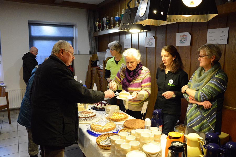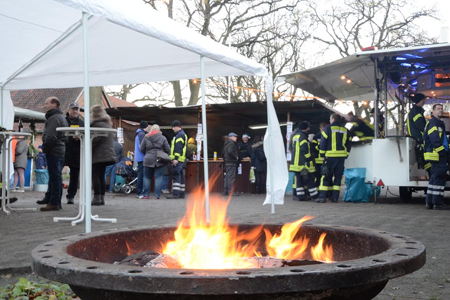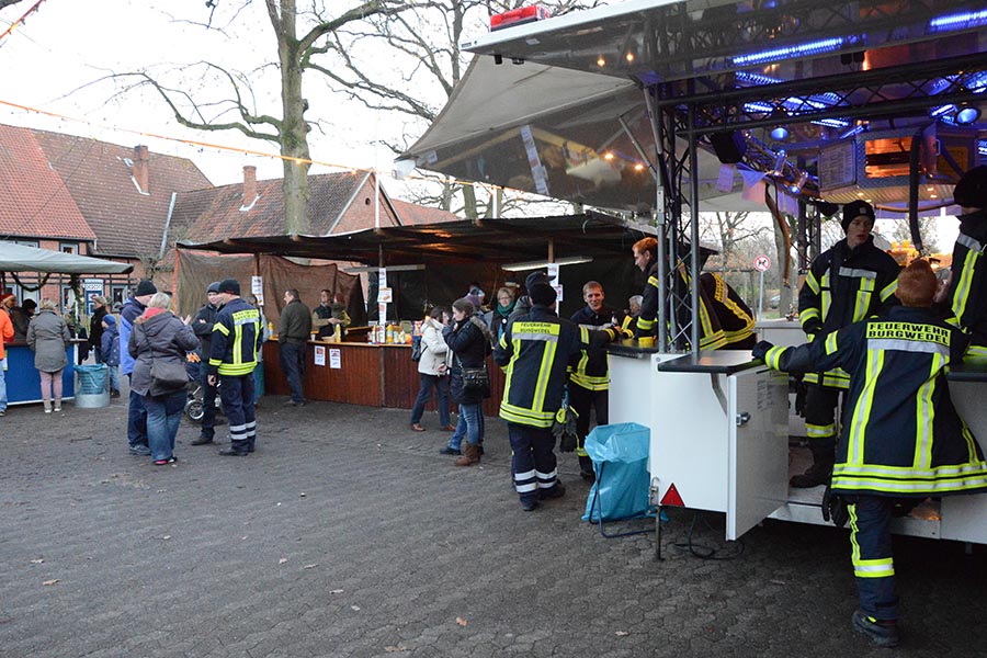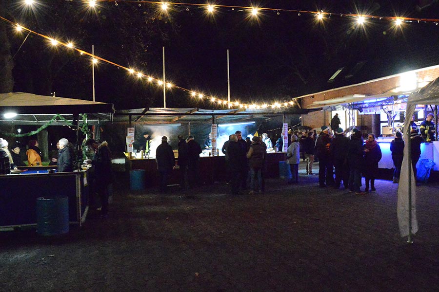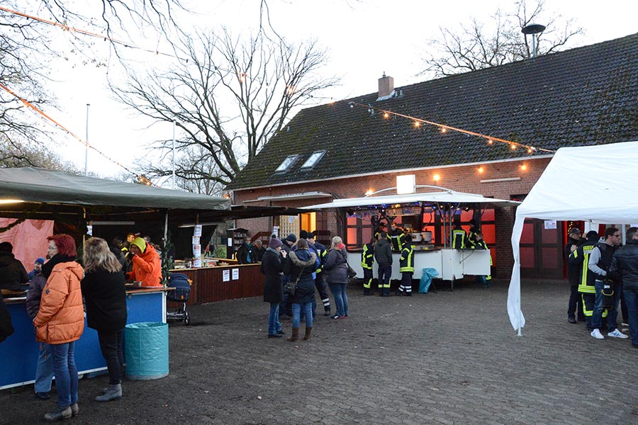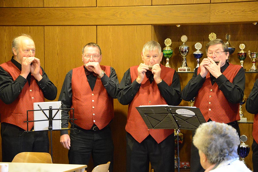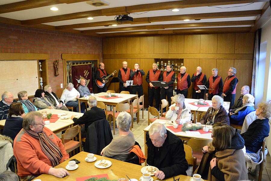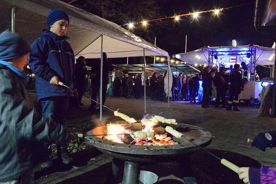 Für eine vorweihnachtsliche Stimmung hatten die beiden Vereine allerhand auf die Beine gestellt. Die Damen von TotalVokal, eine Abteilung des MGV, präsentierten nicht ohne Stolz ihr umfangreiches Torten-Buffet, die Jugendfeuerwehr hatte eine Feuerschale für Stockbrot vorbereitet und bot Popcorn und Kinderpunsch an. Zudem lud eine Hüpfburg zum Toben ein, was ausgiebig genutzt wurde. Aber nicht nur hinter dem Tresen waren die Musiker des MGV anzutreffen. Die Goschenhobler, die Mundharmonikagruppe des MGV, spielten auf der Gitarre begleitet Lieder wie "Lasst uns froh und munter sein" oder "Alle Jahre wieder". Zudem sorgte der Musikzug der Freiwilligen Feuerwehr für eine Vorweihnachtliche Stimmung am Dorfgemeinschaftshaus.