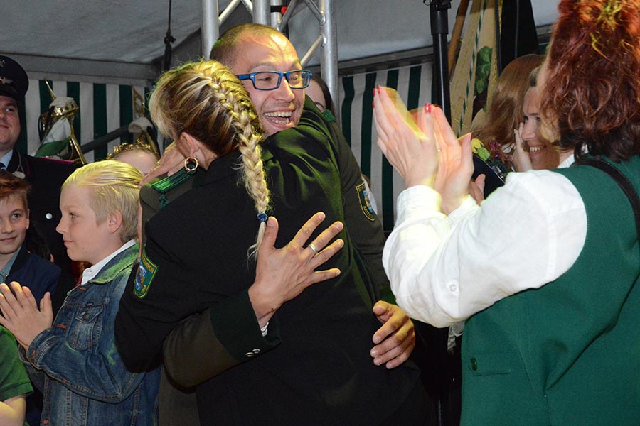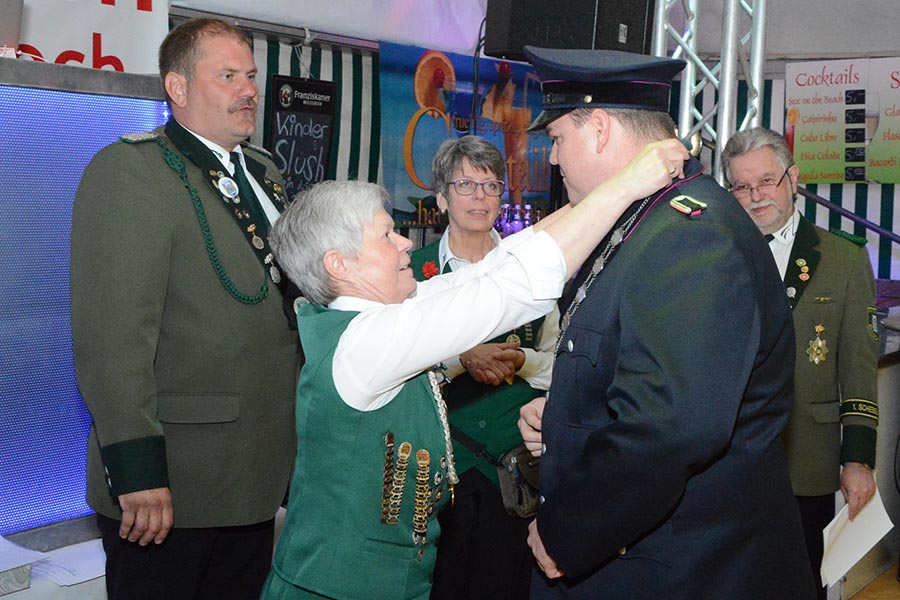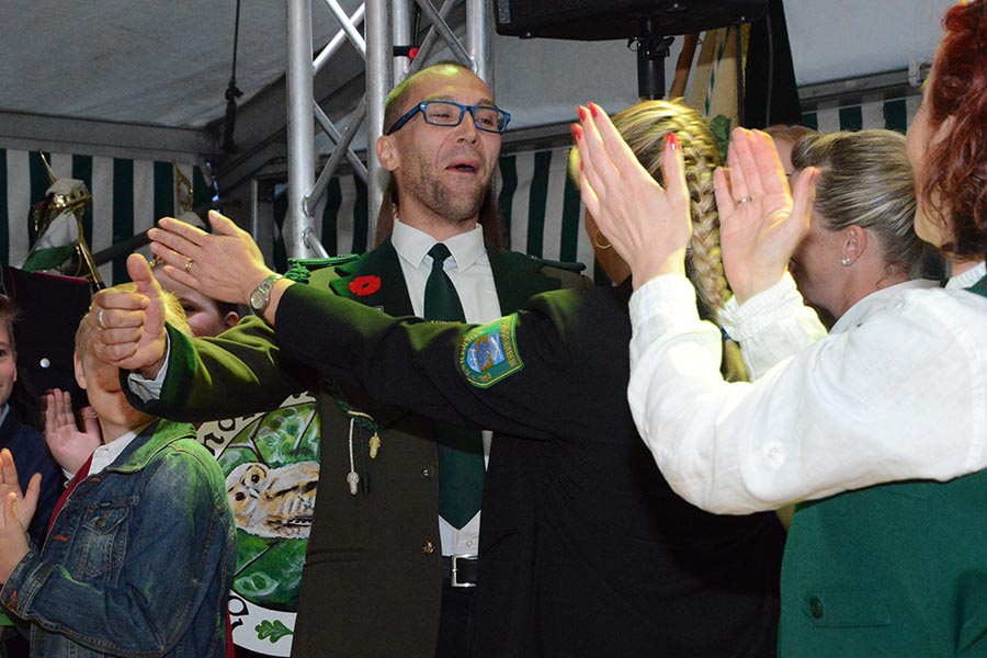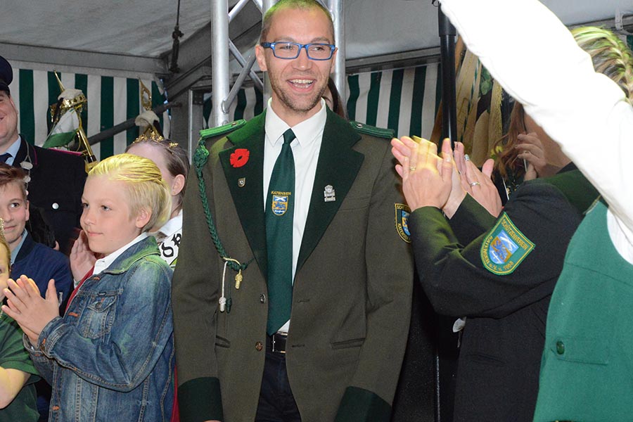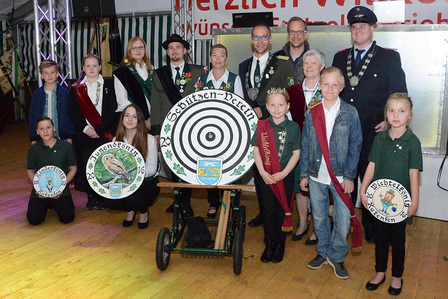 Am heutigen Freitagabend feierte er mit seinem Team Premiere an der Katenser Hauptstraße bei der Eröffnung des Schützenfestes und der Bekanntgabe der neuen Majestäten. Rund 150 Besucher fanden sich bei der Proklamation ein, bei der es ebenfalls eine Änderung zu den Vorjahren gab: Erstmals schossen Schützendamen und -herren auf eine gemeinsame Scheibe und nicht mehr auf zwei getrennte. Die Ursache rührte daher, dass bei den Herren die Beteiligung am Königsschießen nachließ. Zum Stechen im Schützenhaus kurz vor der Eröffnung des Schützenfestes qualifizierten sich so nur zwei Schützen für die Endrunde, hätten sie doch eigentlich 4 Schützen stellen können. So gewann Sven Peterhänsel in diesem Jahr die Schützenwürde, Zweitplatzierte und somit Damenbeste wurde die 1. Vorsitzende, Ute Miehe. Zum Jugendkönig wurde Sascha Gräve proklamiert, Kinderkönig ist nun Hermine Heitmüller. Die schmucke Scheibe des Wichtelkönigs, mit einem Wichtel als Motiv, holte sich Nele Judel, Tochter von Ortsbrandmeister Andre Judel. Und die Feuerwehr hatte noch eine zweite "Vertretung" unter die Schützen gemischt: Stefan Möbius von der Freiwilligen Feuerwehr wurde Bürgerkönig.