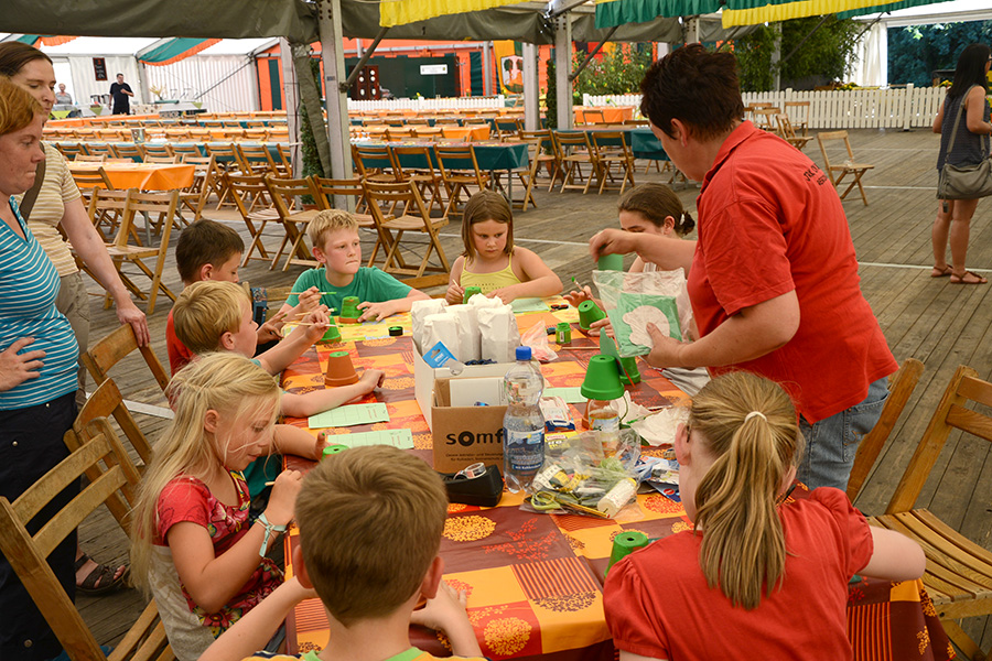 Das JRK hatte sich tolle Mitmachstationen einfallen lassen. Am Basteltisch wurden aus Blumentöpfen Frösche zur Fensterdekoration hergestellt, Erbsen mussten mittels eines Strohhalmes angesaugt und von einem Ort zum nächsten transportiert werden, mit Rasierschaum eingeseifte Luftballons sollten rasiert und Flaschen als Kegel mit einem Ball umgestoßen werden. Für den kleinen Hunger zwischendurch gab es kostenfrei und für jedermann frisch zubereitete Waffeln. Bei den sommerlichen Temperaturen machten rund 60 Kinder mit und genossen das Programm.