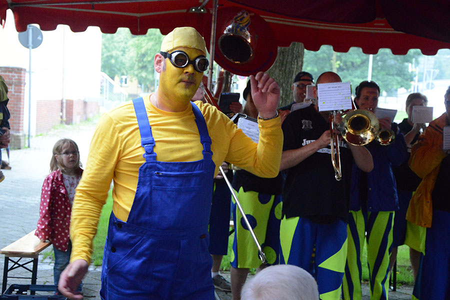 Das Wetter hat der guten Laune keinen Abbruch machen können: Das Junggesellencorps Burgdorf von 1648 war am heutigen Sonnabend, 25. Juni 2016, wieder früh auf den Beinen und ging auf Sammeltour durch die Innenstadt: "Heute wie in jedem Jahr sind die Junggesellen da, um nach alter Tradition, Essen, Trinken abzuholn", war schon von weitem wahrnehmbare der Sammelspruch der Junggesellen zu vernehmen. Und erneut hatten sich die Junggesellen ordentlich "in Schale" geworfen. Gesehen wurden: Ain Affe, eine Banane, ein großes Baby´s, mehrere Panzerknacker (wohl auf Urlaub) sowie zwei Minions, wobei schwer zu erkennen war, ob es die bekannten Protagonisten Stuart und Paul waren…Spaß schienen zu auf jeden Fall zu haben.