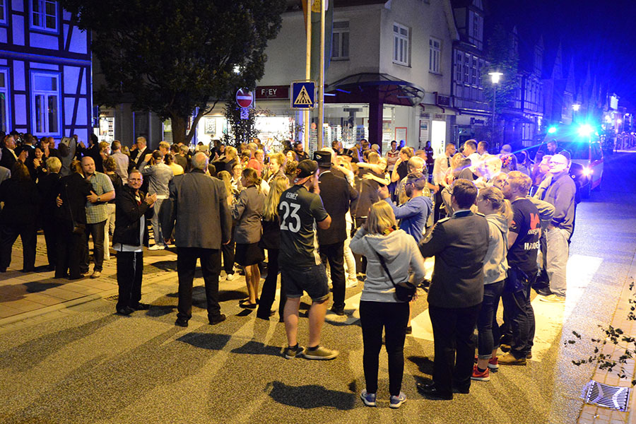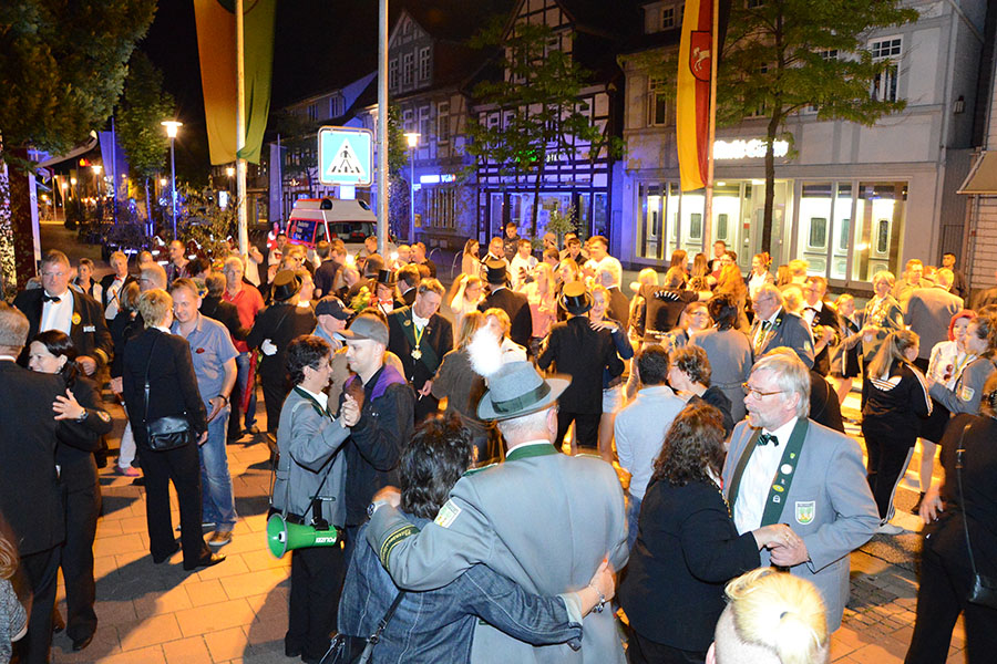 Das 423. Volks- und Schützenfest ist hiermit Geschichte: Mit dem Abtanzen vor dem Rathaus an der Marktstraße wurde die 4-tägige Feier am heutigen Montagmorgen um kurz nach 0 Uhr beendet. Erneut waren mehr als 150 Besucher noch Mitternacht im Festzelt, als das DJ Party Team nach dem letzten Lied die Feierei auf dem Schützenplatz beendete. Doch damit war das Ende noch nicht erreicht: Es übernahm das Fanfarencorps Wikinger, die zunächst zwei Runden durch das Zelt führte, ehe es – unter dem Schutz der Einsatzfahrzeuge von Polizei und DRK Burgdorf – zum Rathaus ging. Hier wurde dann zu den letzten Klängen noch einmal ordentlich abgetanzt und das Ende des Schützenfestes gefeiert: "Burgdorf tanzt ab" im Sinne von "Burgdorf bewegt sich" und ein rundum gelungenes Volks- und Schützenfest ist nun Vergangenheit. Mit großer Vorfreude auf das nächste Jahr gemäß dem Motto: Nach dem Fest ist vor dem Fest.