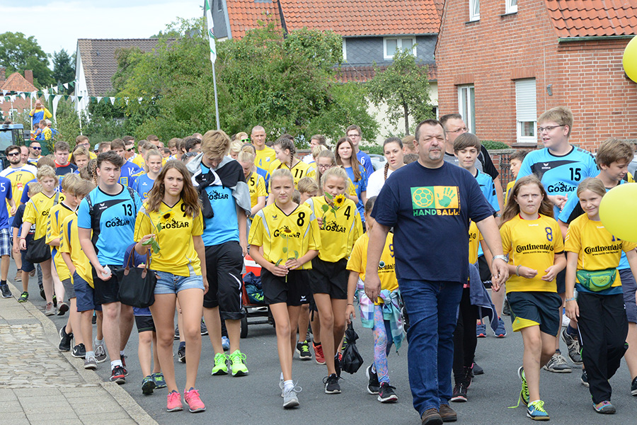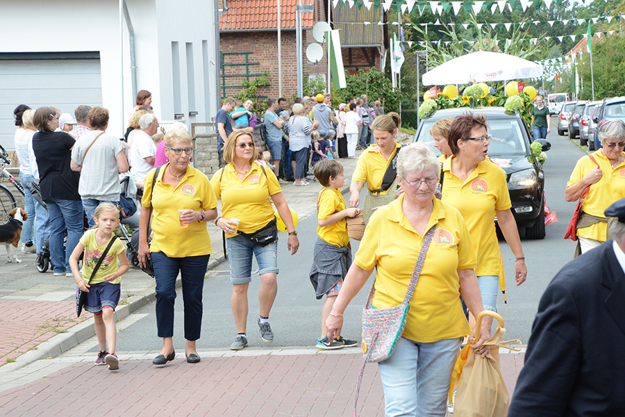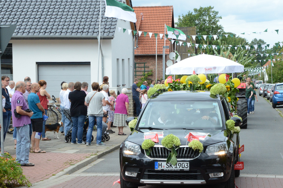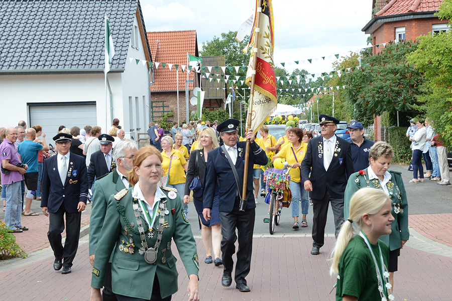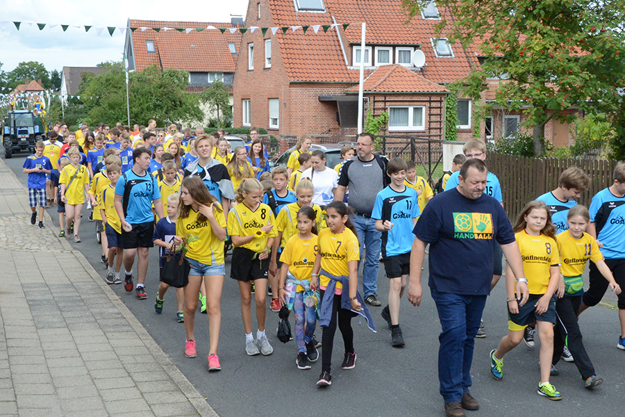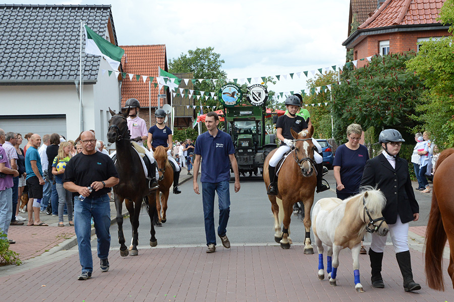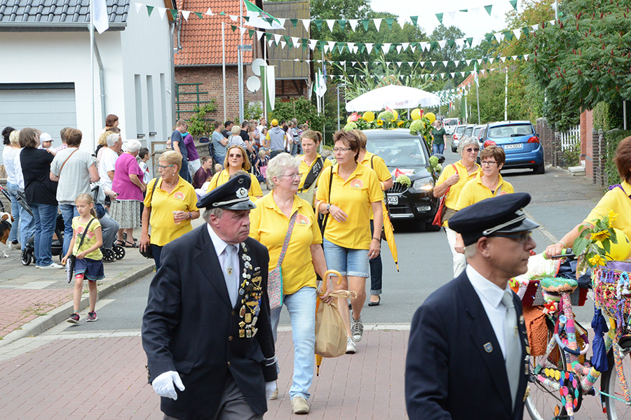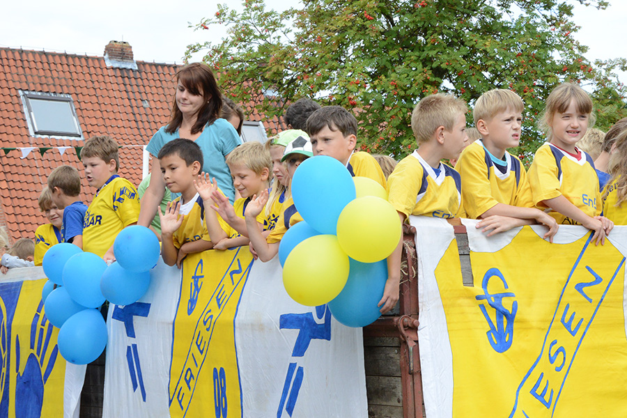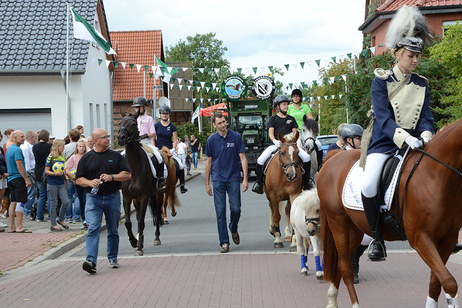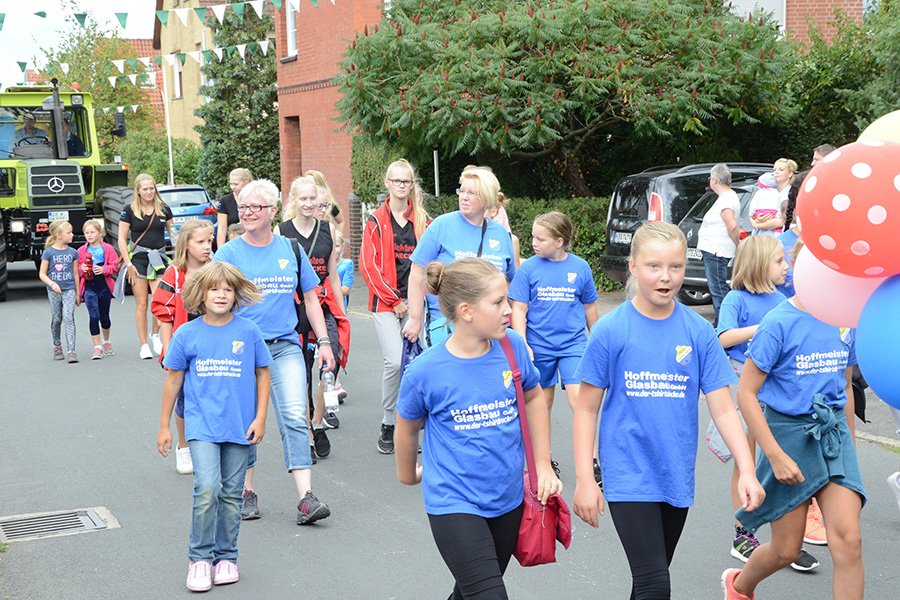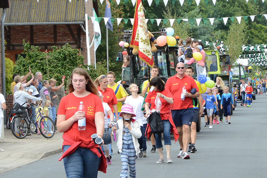 Aber auch aus dem Ort hatten sich wieder viele Vereine, Verbände und Organisationen angeschlossen. So waren die Kyffhäuser Kameradschaft, eine Abordnung des Gelben Hauses, der Sozialverband, das Freibad, die DLRG, das Studio S5, der Reitverein, die Jugendfeuerwehr, die Landjugend, Hof Wöhler und der Bergmannsverein mit Abordnungen vertreten. Das wohl größte Teilnehmerfeld stellte der TSV Friesen Hänigsen, der mit einigen Festwagen und den Sparten Fußball, Turnen, Handball und Baseball dabei war.