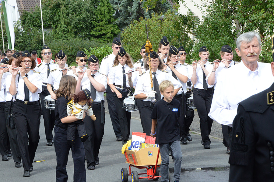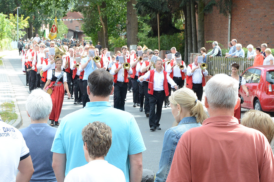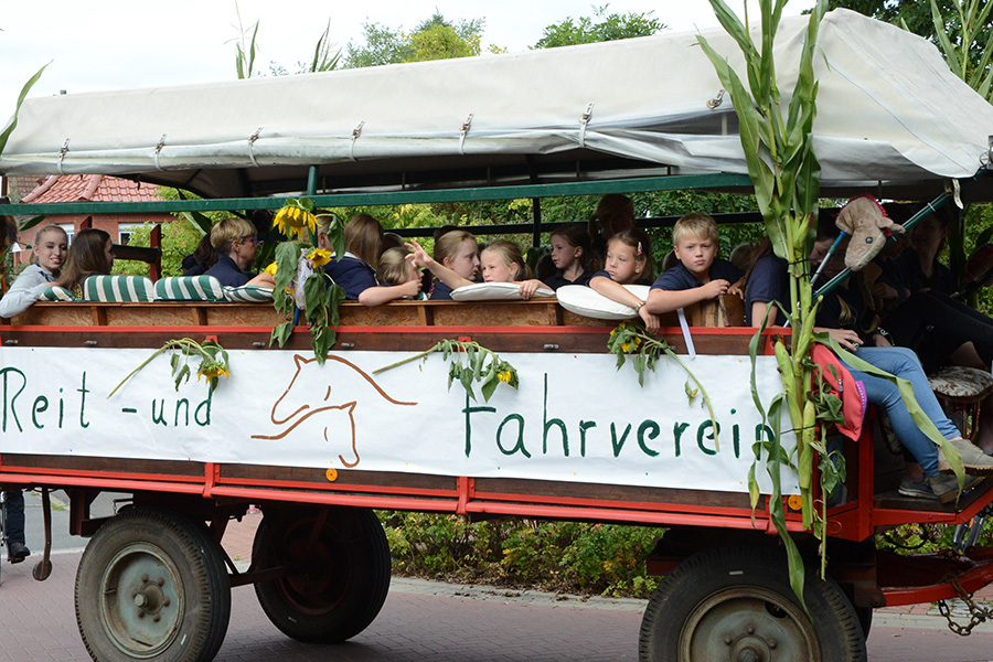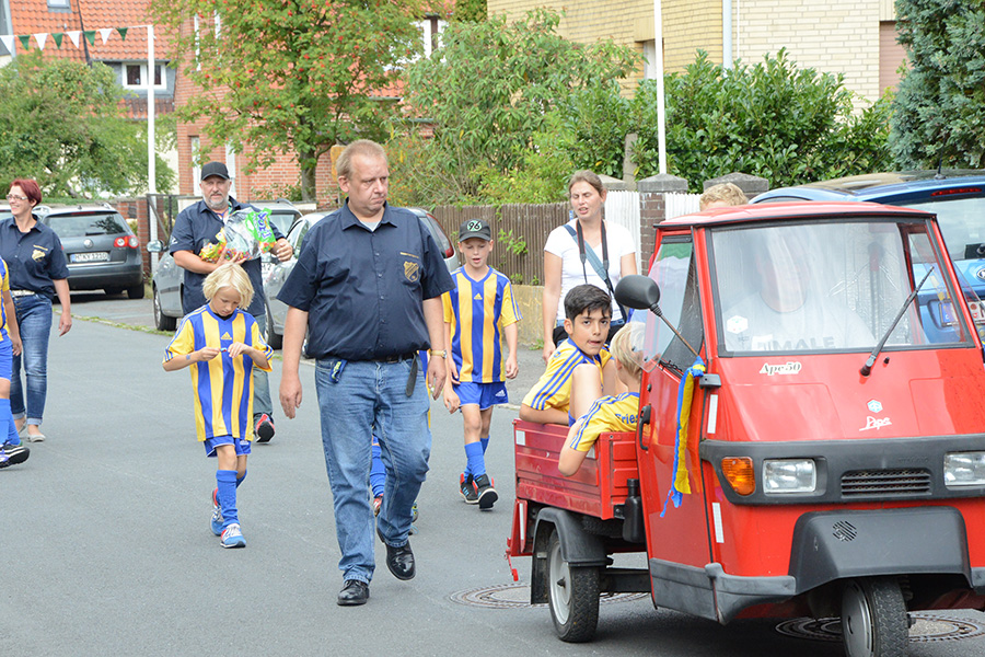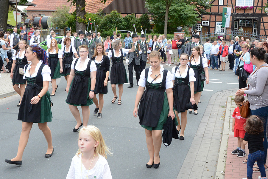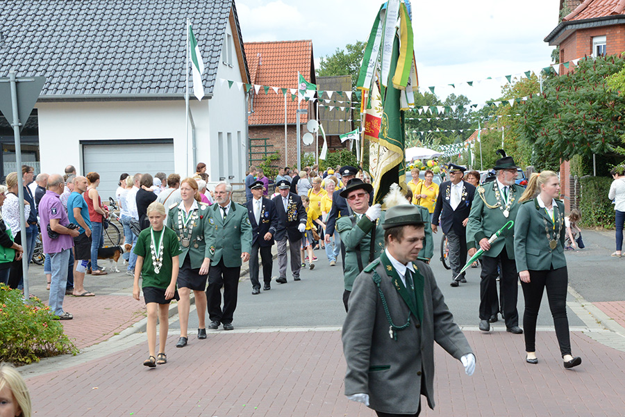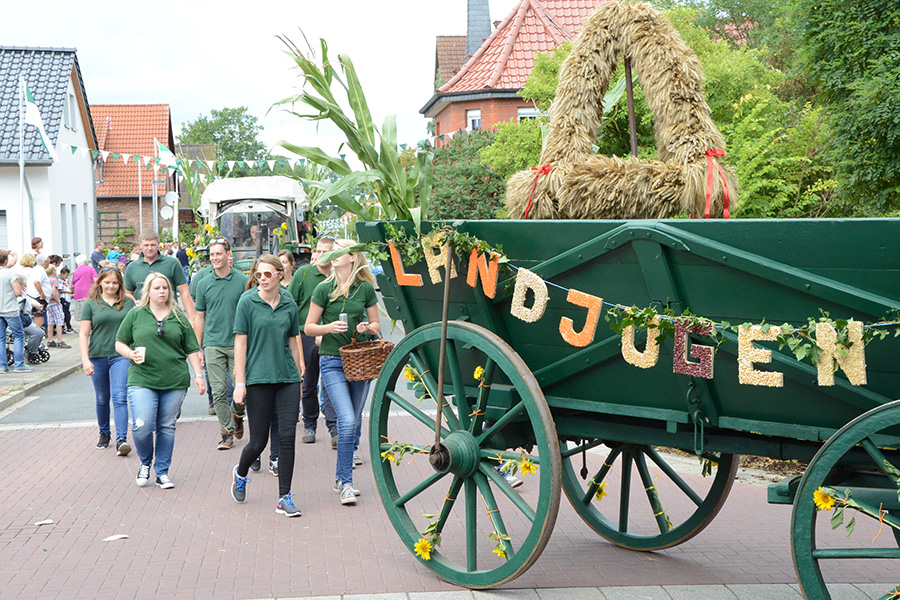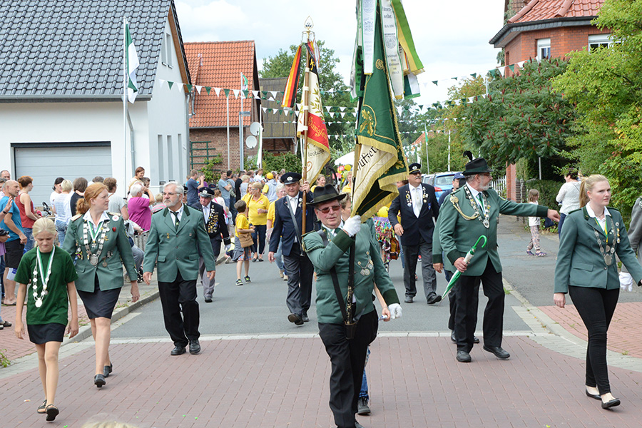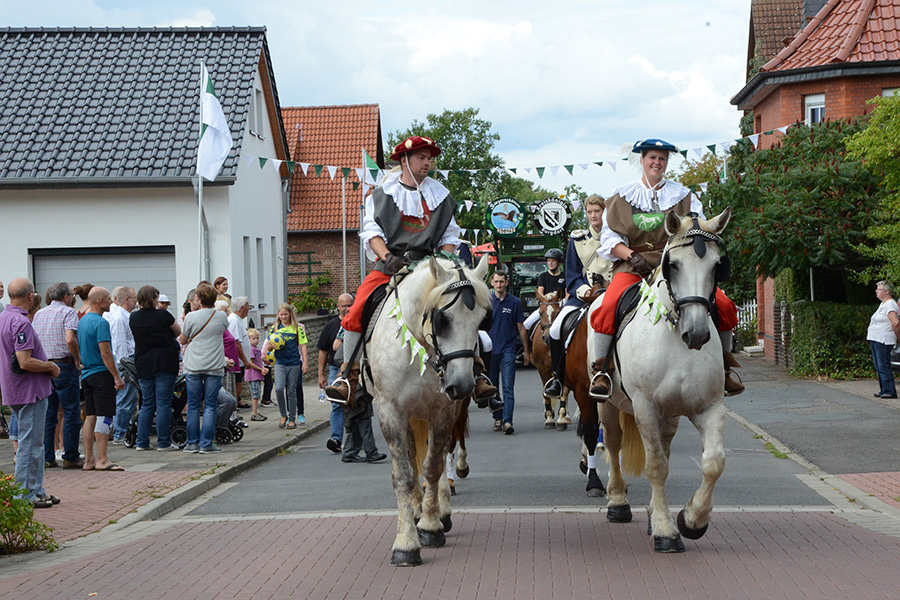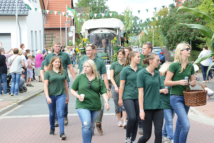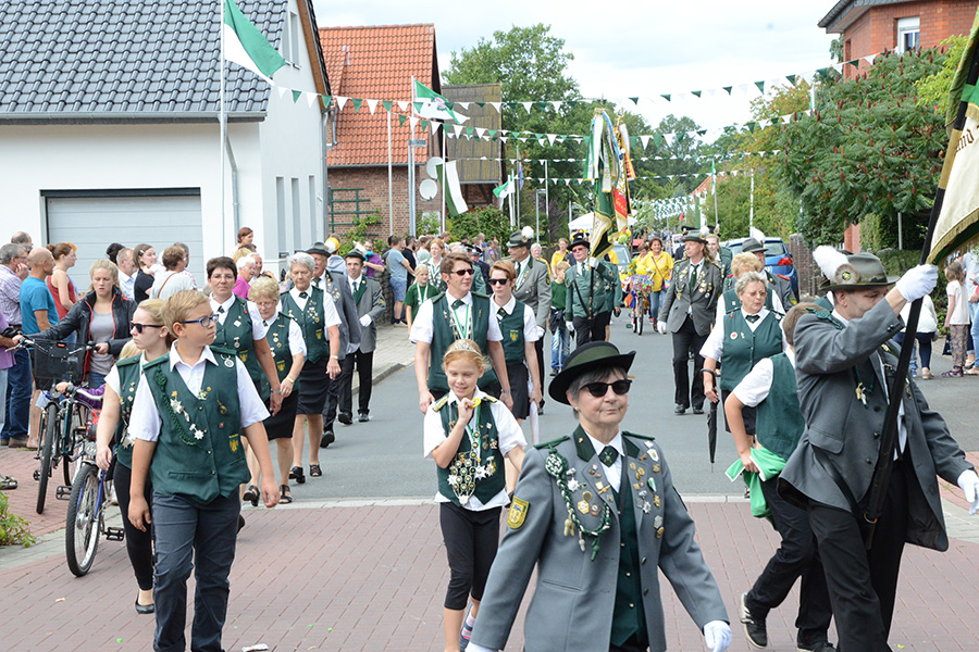 Aber auch aus dem Ort hatten sich wieder viele Vereine, Verbände und Organisationen angeschlossen. So waren die Kyffhäuser Kameradschaft, eine Abordnung des Gelben Hauses, der Sozialverband, das Freibad, die DLRG, das Studio S5, der Reitverein, die Jugendfeuerwehr, die Landjugend, Hof Wöhler und der Bergmannsverein mit Abordnungen vertreten. Das wohl größte Teilnehmerfeld stellte der TSV Friesen Hänigsen, der mit einigen Festwagen und den Sparten Fußball, Turnen, Handball und Baseball dabei war.
