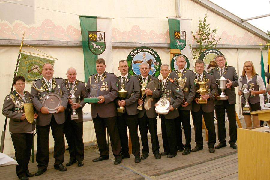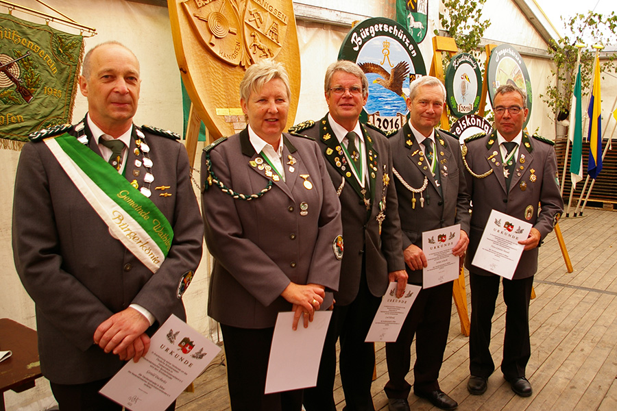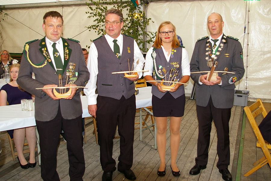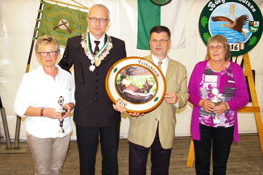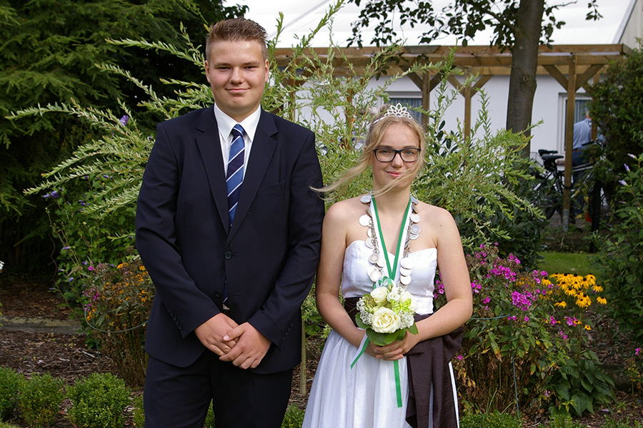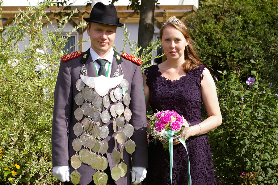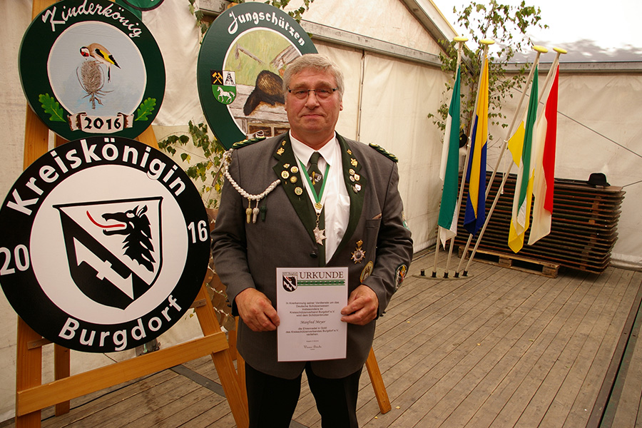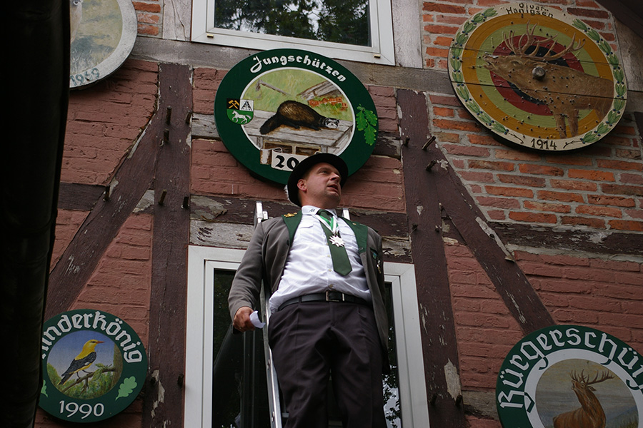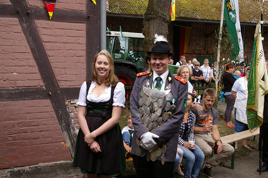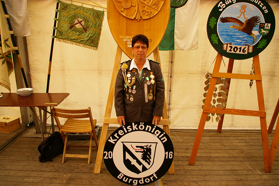 Hunderte Menschen säumten am heutigen Sonntag, 21. August 2016 die Straßen im Uetzer Ortsteil Hänigsen. Schon lange Zeit vor dem großen Festumzug anlässlich des Schützen- und Volksfestes des Bürgerschützenvereins Hänigsen (der AltkreisBlitz berichtete bereits über den Kommers am gestrigen Sonnabend) sicherten sich die Zuschauer die besten Plätze an den Straßen. Wer konnte, der machte es sich auch im Garten oder – noch besser – mit Stühlen und Tischen direkt an der Straße gemütlich, um den bunten Festumzug zu bewundern. Das geschulte Auge erkannte nach den Herolden sowie Oberst und Adjutant hoch zu Ross, gefolgt von weiteren Reitern des Reitvereins Hänigsen, auch gleich die erste Besonderheit des Hänigser festumzuges: Auf dem Scheibenwagen hing – neben der Scheibe des Bürgerschützenkönigs – eine zweite: Es ist die Scheibe der Kreiskönigin Heike Bade, die die höchste Königswürde des Kreisschützenverbandes (KSV) Burgdorf in diesem Jahr nach Hänigsen holte. Sie durfte, neben den vier Gepannen für den Bürgerschützenkönig Dirk Nissel, Jungschützenkönig Jonas Beneke, Kinderkönigin Hann Mundt und der Damenbesten Cindy Klüppel, wie auch Volkskönig Henning Meyer in einem Cabrio am Umzug teilnehmen.