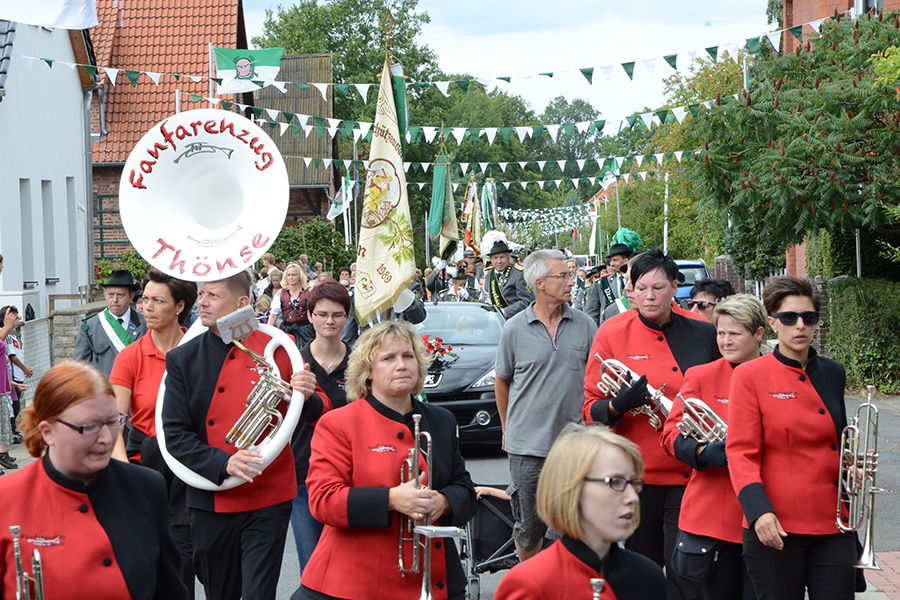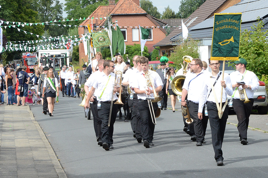 Fünf Musikzüge sorgten in diesem Jahr für die musikalische Begleitung des Zuges: Der Fanfarenzug Thönse, der Spielmannszug Riedel, der Musikzug der Freiwilligen Feuerwehren Burgdorf und Hänigsen, der Spielmannszug Peine wie die Krönhäuser Musikanten begleiteten die vielen Festwagen und Abordnungen, die den Hänigser Festumzug traditionell begleiten. Der Schützenverein (SV) "Freischütz" Wathlingen, der SV Obersahgen, der SV Altermdingsen und der SV Uetze gingen beim Festumzug mit.