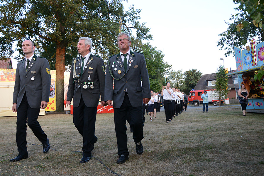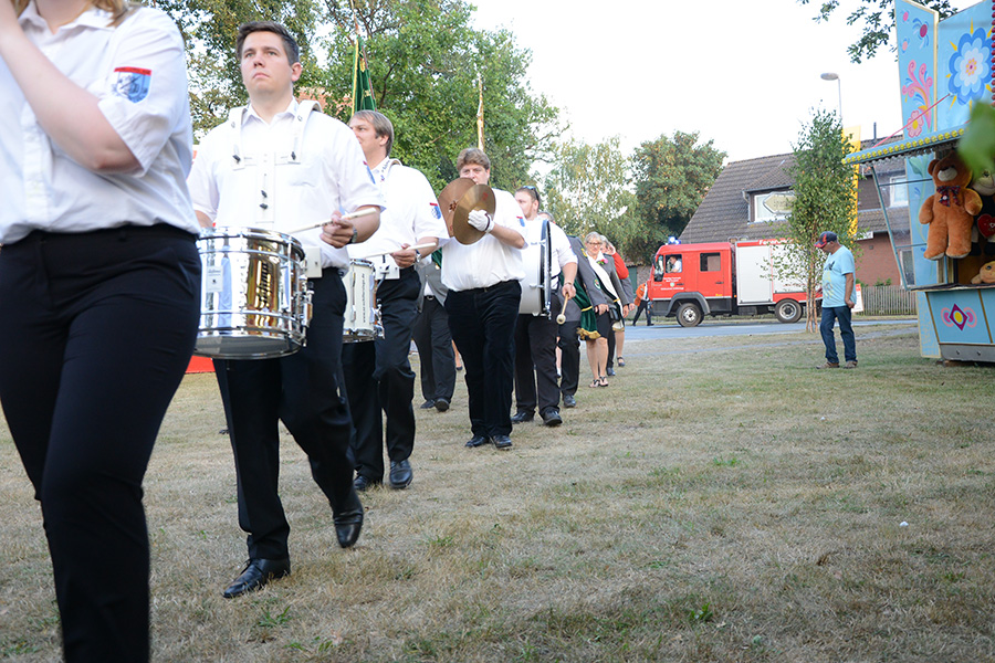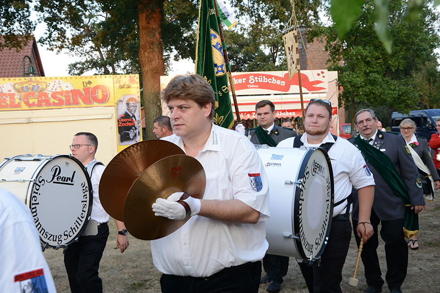 Es war 20:03 Uhr als der 1. Vorsitzende des Sport- und Schützenvereins Schillerslage, Jörg Meyer, am gestrigen Freitag, 26. August 2016, das diesjährige Schützenfest für eröffnet erklärte. Mit dem Kommers und der Proklamation der neuen Könige begann das dreitägige Spektakel an der Sprengelstraße im Burgdorfer Ortsteil. Zuvor waren unter der musikalischen Begleitung des Spielmannszugs und der Sicherung durch die Feuerwehr die amtierenden Majestäten abgeholt worden, die beim traditionellen "Abwracken" ihre Insignien abgeben mussten und dafür einen Orden bekamen.