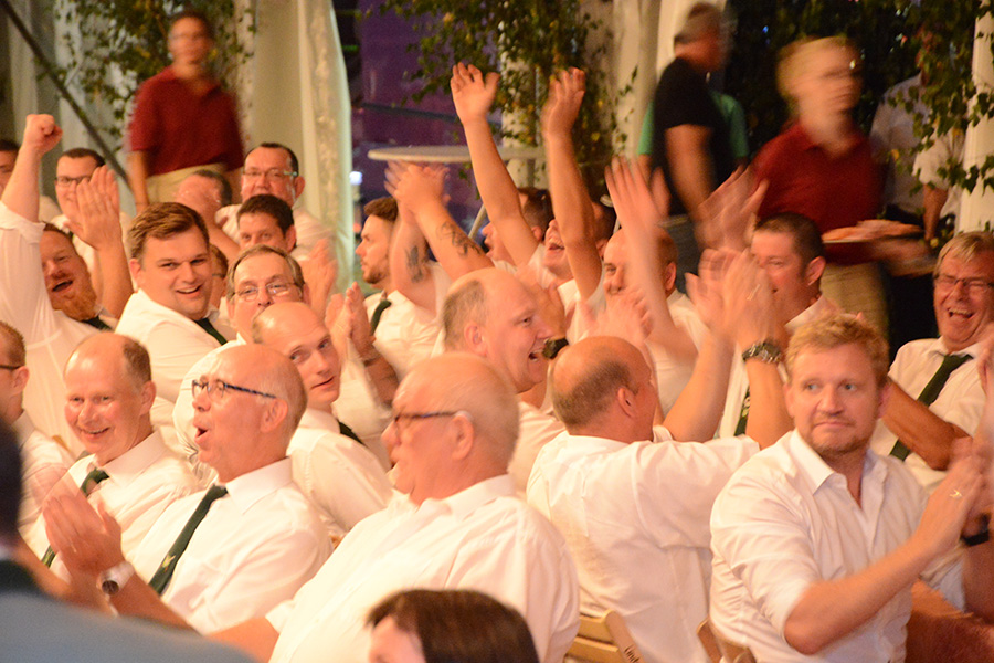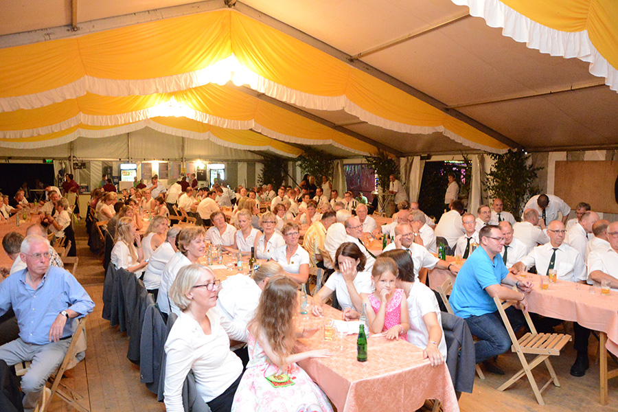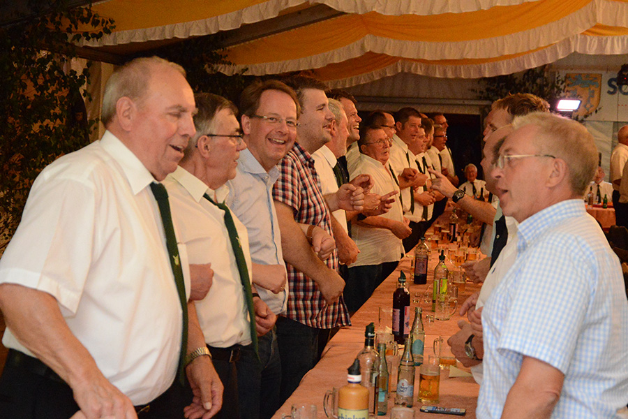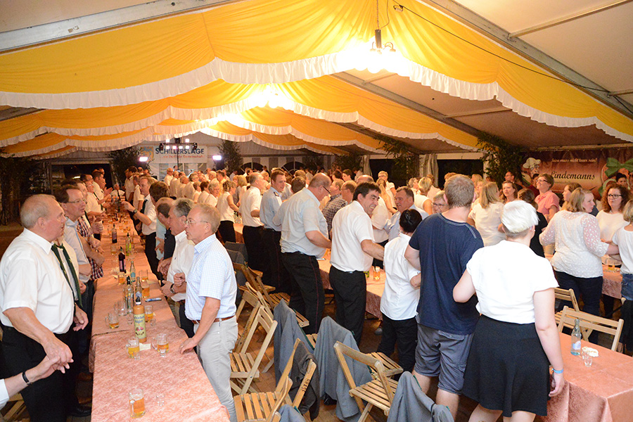 Seine letzte Rede zum Schützenfest hielt Ortsbürgermeister Manfred Dunker, der sich nach 5 Jahren zurückzieht und die Gelegenheit nutzte, sich bei den Schillerslagern für ihren Einsatz im Dorfleben bedankte. Lob gab es auch vom Präsidenten des Kreisschützenverbandes Burgdorf, Werner Bösche. Er zog den Bogen von einer erfolgreichen deutschen Olympiamannschaft nach Schillerslage: Wenn die Schützenfeste ähnlich bewertet würden, dann wären die Schillerslager die Sieger. "Wo bekommt man das noch so gut hin? Da ist hier in Schillerslage, das sind sie hier", betonte er in seinen kurzen Grußworten, die mit großem Jubel gefeiert wurden. Stichwort "feiern": Es dauerte in diesem Jahr rund 30 Minuten, bis das erste Mal die Festgemeinschaft anfing zu singen, kurze Zeit später wurden die Stühle nicht mehr zum Sitzen sondern zum Stehen benutzt. Als der Knoten einmal geplatzt war, hatte Schützenchef Jörg Meyer hin und wieder Probleme, die Festgemeinschaft zur Ruhe zu bringen. Feiern könnten sie nach der Proklamation noch genügend.