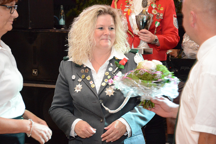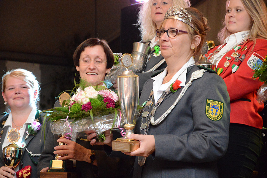 Diese ging wie immer unter einem Trommelwirbel für die Könige vonstatten, wenn auch die Namen schon bekannt waren. Neue Kinderkönigin wurde Larissa Gawlik und bei der Jugend setzte sich Michelle-Monique Schrödter durch, die zudem Winterjugendkönigin ist. Ihre Mutter Maike Schrödter wurde KK-Königin. Eine Konstellation, die die beiden schon einmal hatten: Vor fünf Jahren wurde Maike Schrödter Schützenkönigin, ihre Tochter Kinderkönigin. Die KK-Königin hatte jedoch keinen KK-König an ihrer Seite am Königstisch sitzen. Dieser Platz blieb leer, wie später noch aufzulösen war. Den Titel der Damenkönigin sicherte sich Britta Lohmann, die die Glückwünsche der Damenabteilung Glückwünsche in Form eines Ständchens überbracht bekam. Einen KK-König hatten die Schillerslager natürlich auch ausgeschossen, auch wenn dieser nicht an seinem Platz saß: Jens Reupke, schon Gewinner der Wanderpreises des Schützenkollegiums, hatte sich beim Schießen mit dem Kleinkalibergewehr durchgesetzt und bekam so die Kette umgehängt. Er wird diesen "Job" jedoch nur in Teilzeit nachgehen können, denn er bekam zusätzlich noch die Königskette überreicht und saß deshalb in der Mitte des Königstisches, wie es sich für einen König gehört.