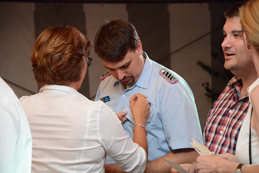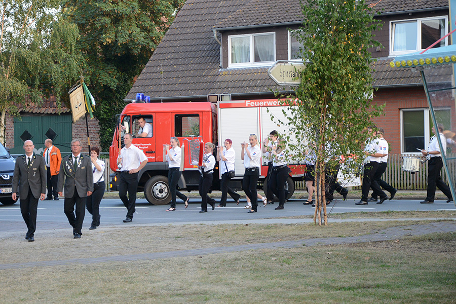 Es war 20:03 Uhr als der 1. Vorsitzende des Sport- und Schützenvereins Schillerslage, Jörg Meyer, am gestrigen Freitag, 26. August 2016, das diesjährige Schützenfest für eröffnet erklärte. Mit dem Kommers und der Proklamation der neuen Könige begann das dreitägige Spektakel an der Sprengelstraße im Burgdorfer Ortsteil. Zuvor waren unter der musikalischen Begleitung des Spielmannszugs und der Sicherung durch die Feuerwehr die amtierenden Majestäten abgeholt worden, die beim traditionellen "Abwracken" ihre Insignien abgeben mussten und dafür einen Orden bekamen.