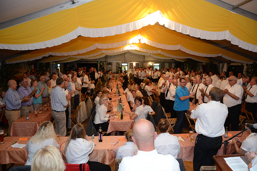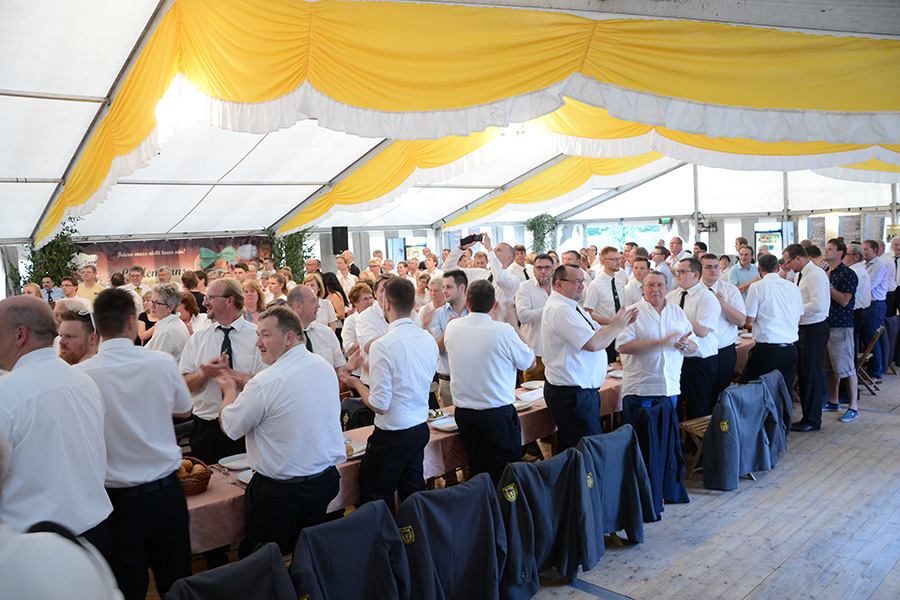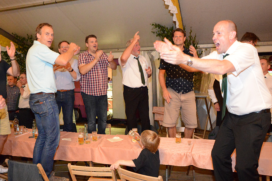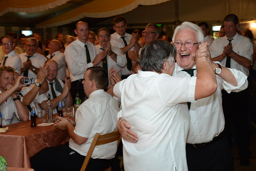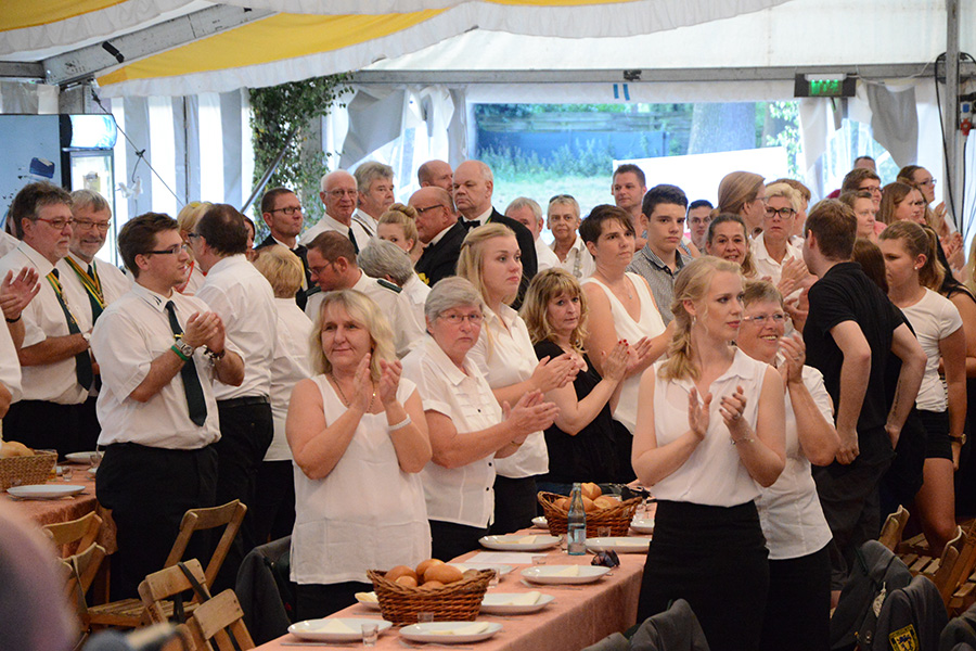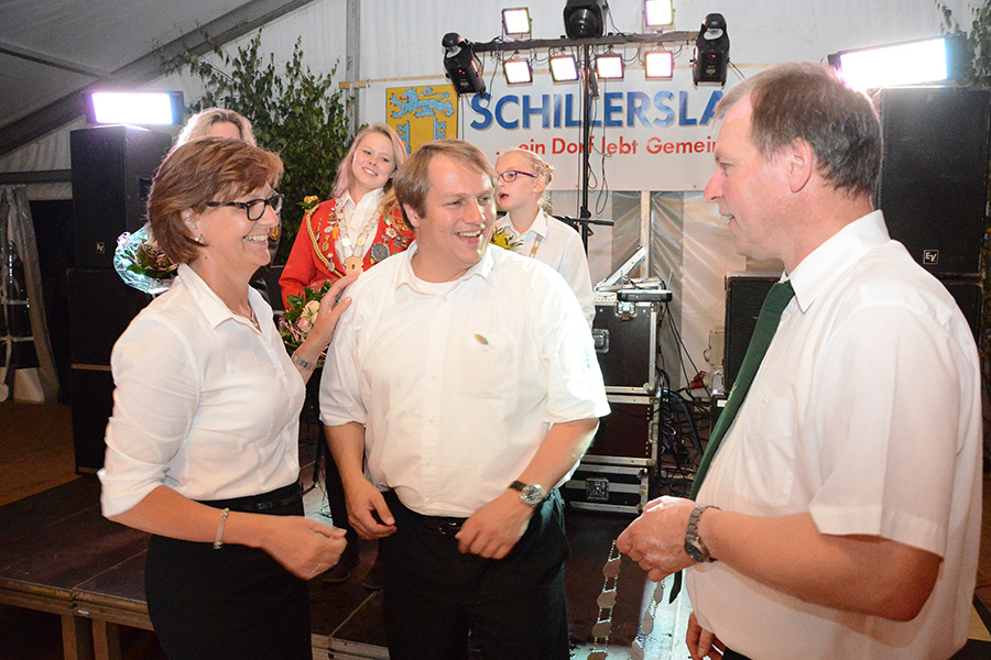 Seine letzte Rede zum Schützenfest hielt Ortsbürgermeister Manfred Dunker, der sich nach 5 Jahren zurückzieht und die Gelegenheit nutzte, sich bei den Schillerslagern für ihren Einsatz im Dorfleben bedankte. Lob gab es auch vom Präsidenten des Kreisschützenverbandes Burgdorf, Werner Bösche. Er zog den Bogen von einer erfolgreichen deutschen Olympiamannschaft nach Schillerslage: Wenn die Schützenfeste ähnlich bewertet würden, dann wären die Schillerslager die Sieger. "Wo bekommt man das noch so gut hin? Da ist hier in Schillerslage, das sind sie hier", betonte er in seinen kurzen Grußworten, die mit großem Jubel gefeiert wurden. Stichwort "feiern": Es dauerte in diesem Jahr rund 30 Minuten, bis das erste Mal die Festgemeinschaft anfing zu singen, kurze Zeit später wurden die Stühle nicht mehr zum Sitzen sondern zum Stehen benutzt. Als der Knoten einmal geplatzt war, hatte Schützenchef Jörg Meyer hin und wieder Probleme, die Festgemeinschaft zur Ruhe zu bringen. Feiern könnten sie nach der Proklamation noch genügend.