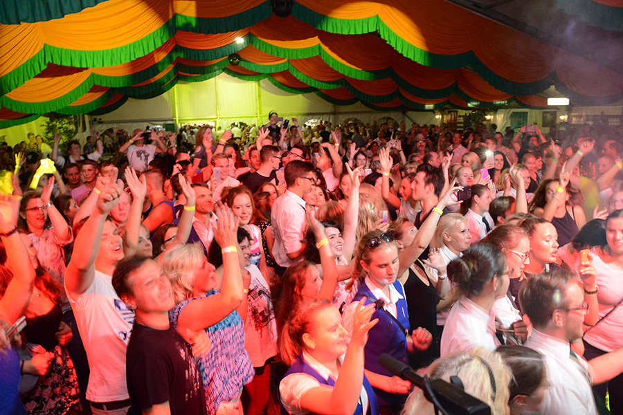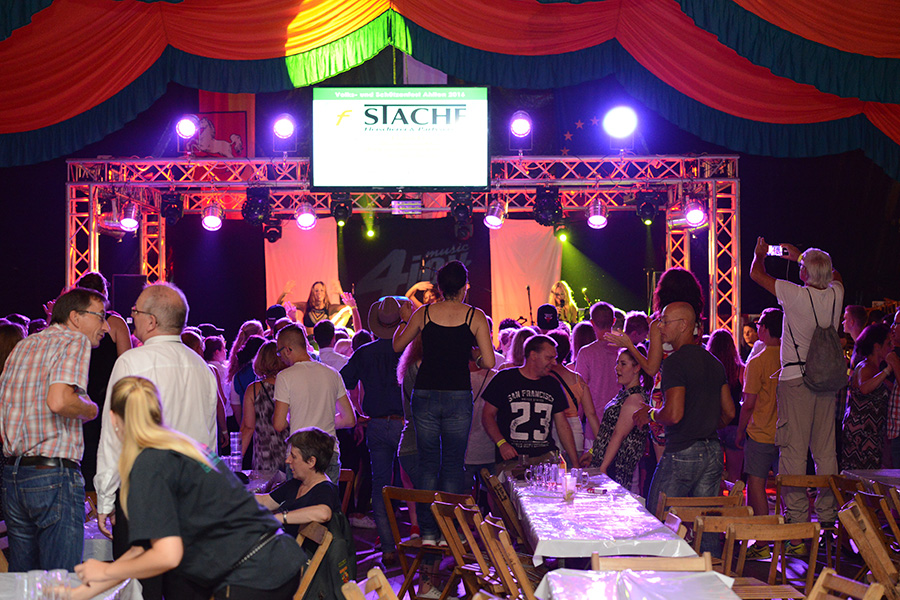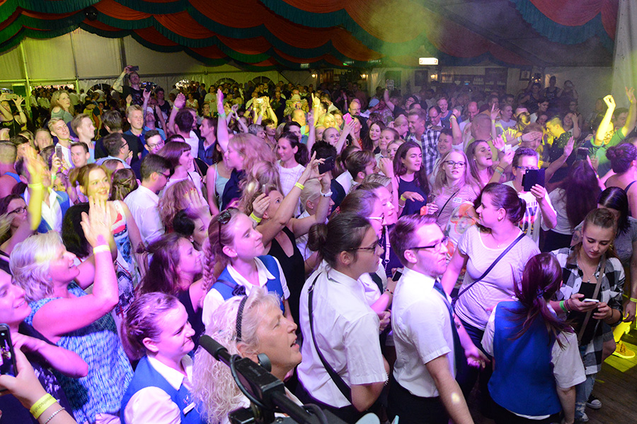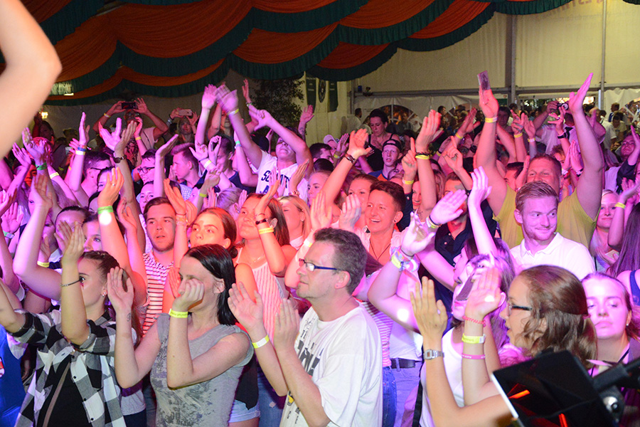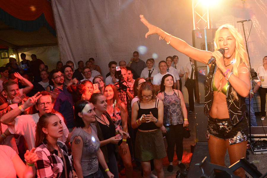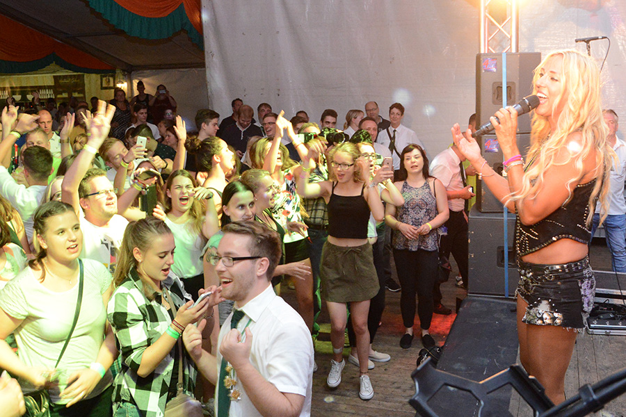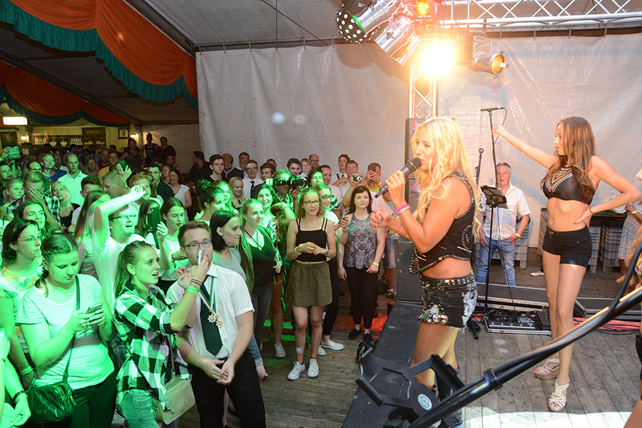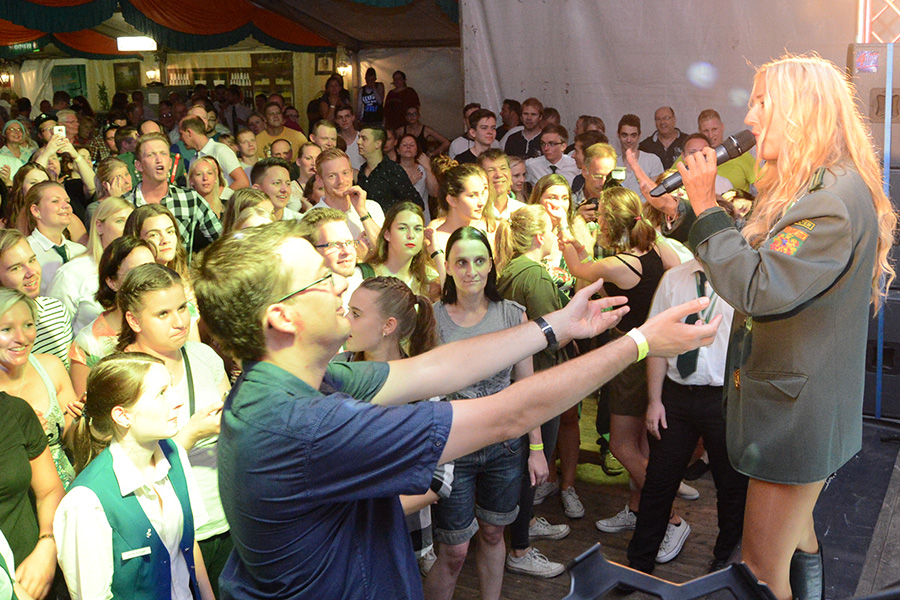 Sie heizte – angemessen der Temperaturen – dem Festzelt weiter ein, ließ das Publikum die Arme hochreißen, die Fans schrien und verteilte CD´s ins Publikum. Eine besondere Ehre wurde dann einem Schützenbruder der Ahltener zuteil: Er durfte Loona huckepack durchs Publikum tragen: Eine Echo-Gewinnerin auf den Schultern zu tragen – chapeau!