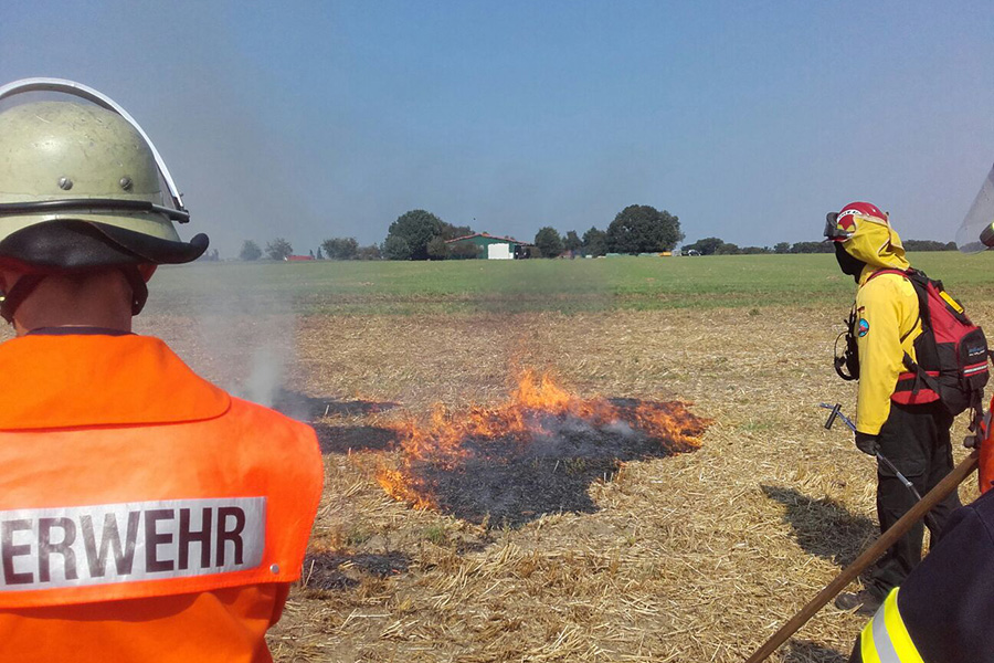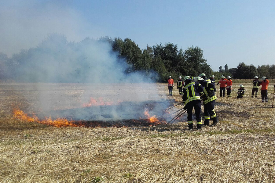 Ein brennendes Stoppelfeld ist bei Trockenheit und sommerliche Temperaturen keine Seltenheit und die äußeren Bedingungen bieten dem Feuer beste Bedingungen. Diese waren am gestrigen Sonnabend ebenfalls gegeben, als die Feuerwehren der Stadt Burgwedel das Löschen eines Stoppelfeldes in Theorie und Praxis übten.