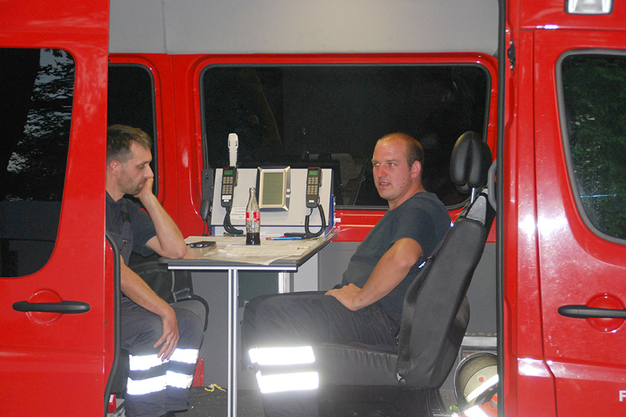 Einsatzleiter Tim Degotschin führte hierbei souverän das Geschehen unter den drei eingesetzten Ortswehren und gab immer wieder Meldung an die Funkmannschaft unter der Leitung von Sören Vasterling, der diese Übung ausgearbeitet hatte.