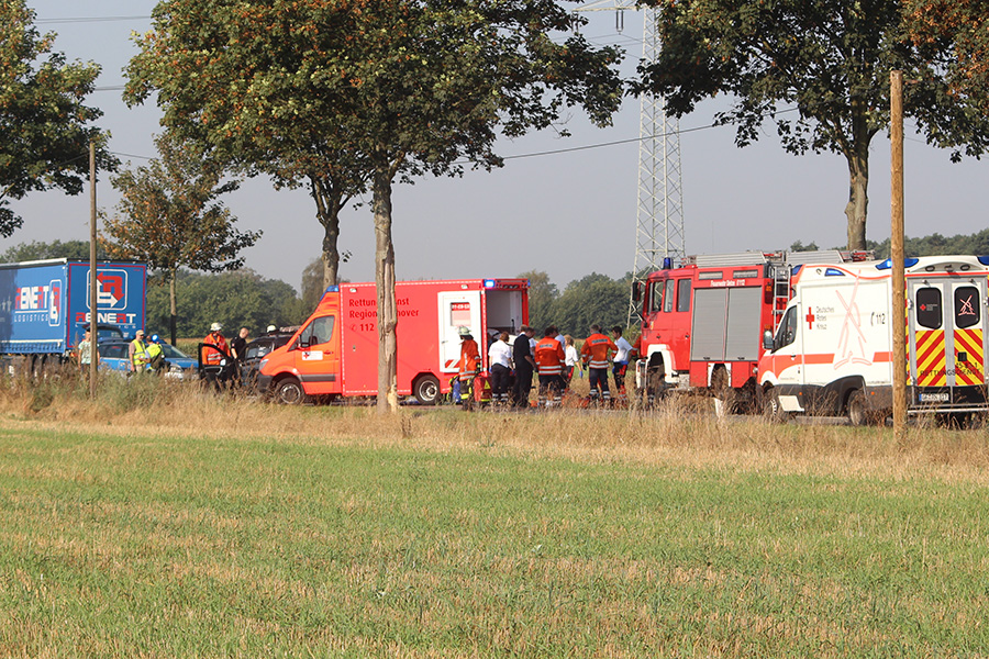 Nur wenig später erreichten der Rettungshubschrauber Christoph 4 sowie der aus Uetze alarmierte Rettungswagen den Unfallort. Die Einsatzkräfte der Feuerwehr übergaben den 56-Jährigen daraufhin an den Rettungsdienst. Der Rettungshubschrauber flog ihn mit lebensgefährlichen Verletzungen in eine Klinik. Weitere Verletzte gab es nicht. Die Feuerwehrkräfte klemmten noch die Batterien des Unfallfahrzeugs ab, bevor die beiden Ortswehren um 10:50 Uhr wieder in den Gerätehäusern eingerückt waren.