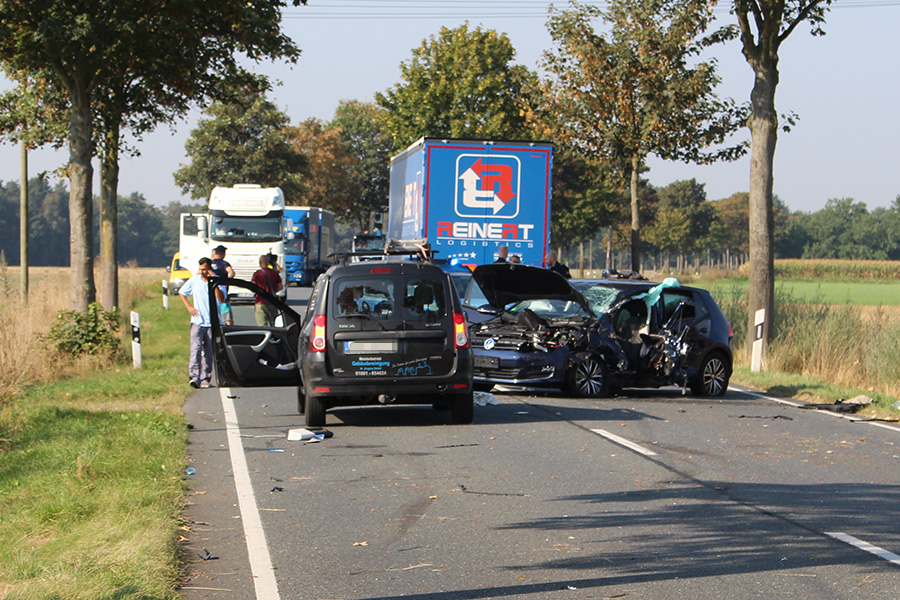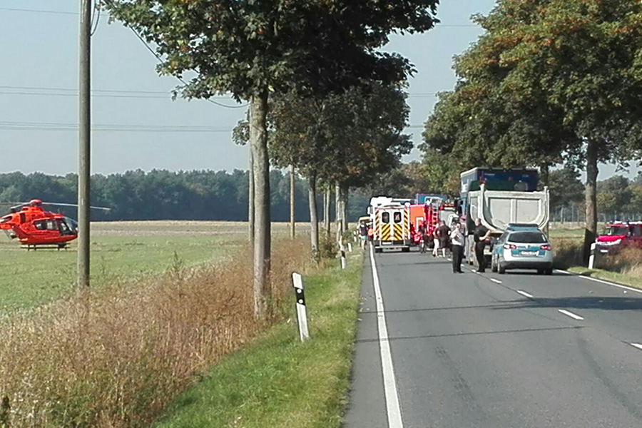 Heute Vormittag, Dienstag, 13. September 2016, gegen 9:50 Uhr, ist es an der Bundesstraße (B) 188 bei Altmerdingsen zu einem schweren Unfall gekommen. Dabei ist ein 56-jähriger Golf-Fahrer lebensgefährlich verletzt worden..