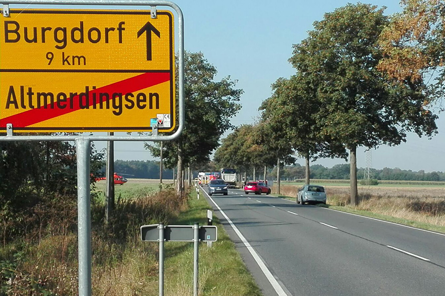 Nur wenig später erreichten der Rettungshubschrauber Christoph 4 sowie der aus Uetze alarmierte Rettungswagen den Unfallort. Die Einsatzkräfte der Feuerwehr übergaben den 56-Jährigen daraufhin an den Rettungsdienst. Der Rettungshubschrauber flog ihn mit lebensgefährlichen Verletzungen in eine Klinik. Weitere Verletzte gab es nicht. Die Feuerwehrkräfte klemmten noch die Batterien des Unfallfahrzeugs ab, bevor die beiden Ortswehren um 10:50 Uhr wieder in den Gerätehäusern eingerückt waren.