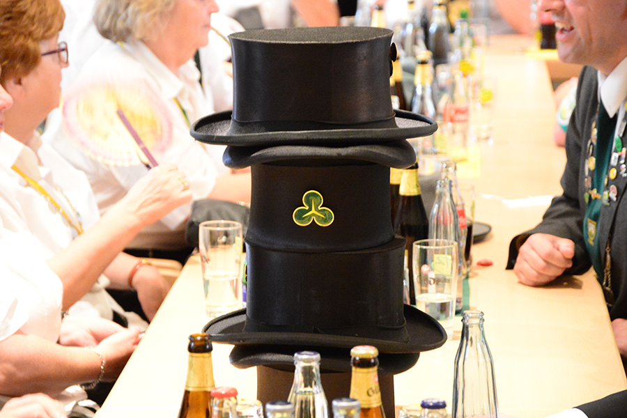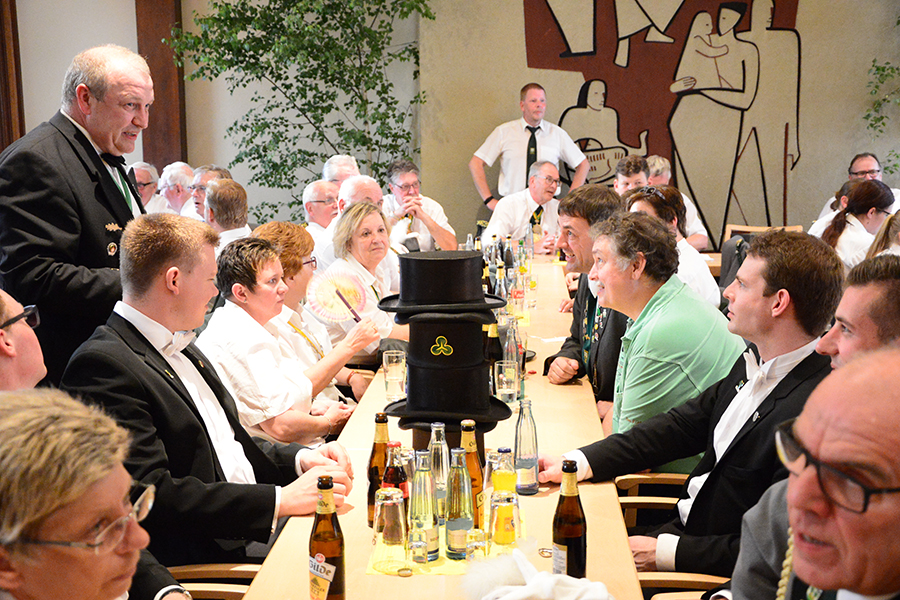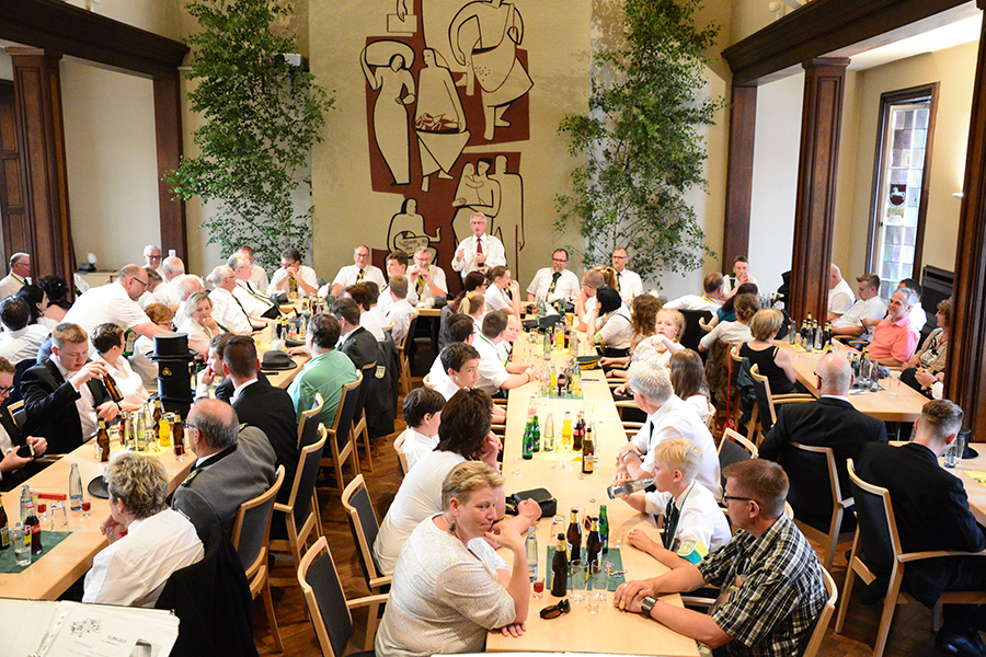 Der 1. Vorsitzende der Burgdorfer Schützengesellschaft, Jörg Hoppe, konnte neben den noch amtierenden Majestäten auch die Hannoverschen Bruchmeister im Ratssaal begrüßen. "Ihr werdet sehen: Auch hier kann man Schützenfest feiern", gab er den vier jungen Männern mit auf dem Weg, ehe der Spielmannszug aufspielte.