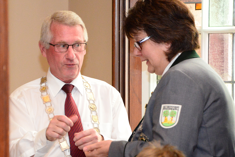 Kurz bevor mit dem Großen Zapfenstreich das Schützenjahr 2016/17 in Burgdorf zu Ende geht und am morgigen Freitag, 23. Juni 2017, die neuen Majestäten proklamiert werden, hat am heutigen Donnerstag Bürgermeister Alfred Baxmann im Ratssaal im Rathaus I an der Marktstraße bereits die Ratskette übergeben. "Sie ist die jüngste Gewinnerin der Ratskette", so Baxmann, als er die Kette an die Jungschützin Rabea Hansen überreichte. Möglich wurde dies durch eine Änderung der Modi um das Schießen um die Ratsscheibe und die Schützenscheibe. Seit vergangenen Jahr schießen die Mitglieder des Rates wie auch die Schützen der Schützengesellschaft abwechselnd auf die Rats- und Schützenscheibe. So durften in diesem Jahr die Schützen auf die Ratsscheibe schießen. Die Ratsmitglieder auf die Schützenscheibe.