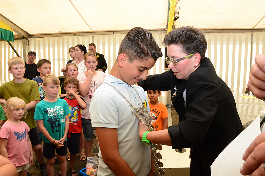 Die erste Majestät des Burgdorfer Volks- und Schützenfestes bekam anschließend seine Unsignien: Orden und Kette bekam Zidane Baran als Kinderkönig 2017 überreicht. Er erhielt als Preis zudem einen Gutschein für ein Fahrrad im Wert von 200 Euro. Insgesamt 37 Kinder hatten um die Kinderkönigswürde geschossen. 25 Preise, darunter einen Quadrocopter, Kopfhörer, Zoo-Gutscheine, Longboard und Kino-Gutscheine wurden überreicht. Zudem bekamen 12 Kinder einen Trostpreis.
