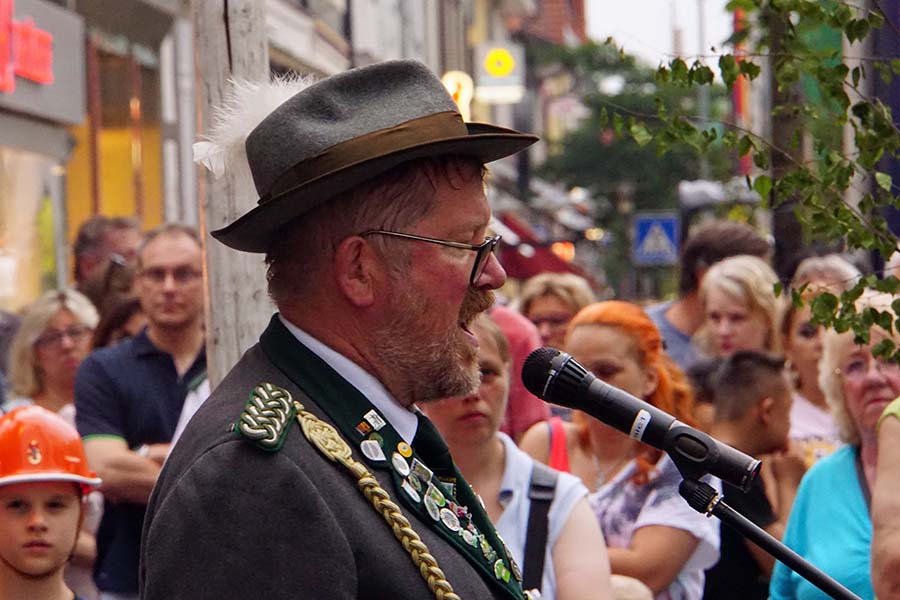 Traditionell ehrten die Burgdorfer Schützen auch am ersten offiziellen Tag ihres 424. Schützenfestes die seit dem letzten Jahr verstorbenen Schützinnen und Schützen. Kommandeur Rolf Hoppe verlas die Gedenkliste in Anwesenheit der angetretenen Korporationen der Burgdorfer Schützengesellschaft, des Fanfarencorps Wikinger, der Ratsmitglieder der Stadt, musikalisch dabei begleitet vom Feuerwehrmusikzug Burgdorf-Hänigsen. Für weitere Stimmung sorgten die Fackelträger der Burgdorfer Feuerwehrjugend.