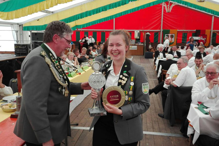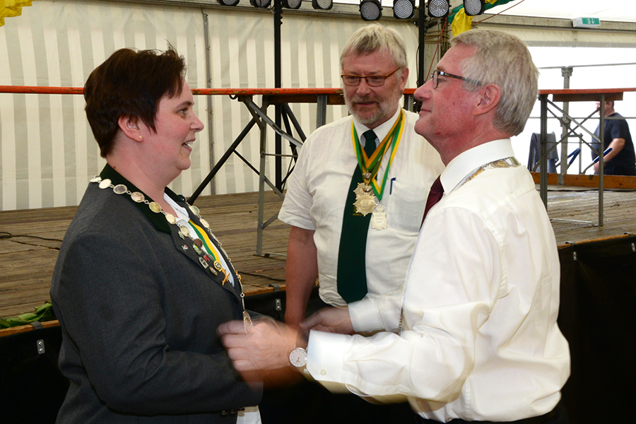 Bürgermeister Alfred Baxmann konnte zudem die Bürgermeisterkette überreichen: Diese ging an Nicole Schulze Frieling, die vom Bürgermesiter die Kette umgelegt bekam. Für den musikalischen Rahmen sorgte der Musikzug der Freiwilligen Feuerwehren Burgdorf und Hänigsen. Danach ging es für die Schützen ins Schützenhaus An der Bleiche, um den diesjährigen König auszuschießen, der direkt im Anschluss verkündet wird.