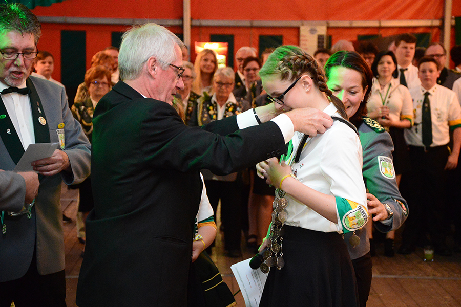 Desweiteren bekamen auch Jungschützenkönigin Carina Bludau-Wachholz und Zwergenkönigin Ronja Hansen ihre Ketten überreicht.