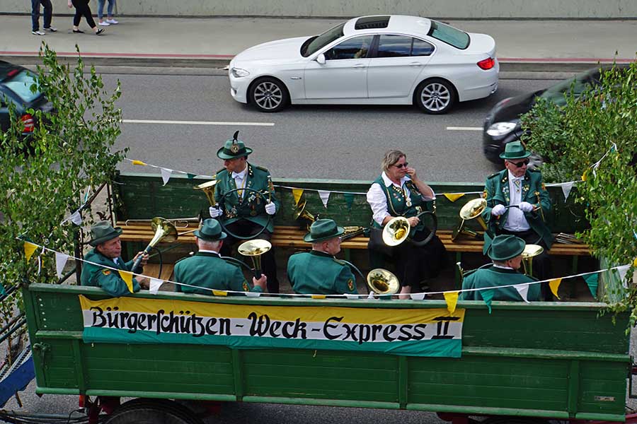 Nach Schützenbruderschaft "Das Große Freie" mit Standarte und Silbervogelkönig 2017, der Lehrter Bürgerschützengesellschaft (BSG) mit Schützen- und Damenabteilung sorgte die Brassband der BGS mit den Freunden des Musikzug TuS Bothel (LK Rotenburg/Wümme) für ausgelassenes "Streetparade"-Gefühl.