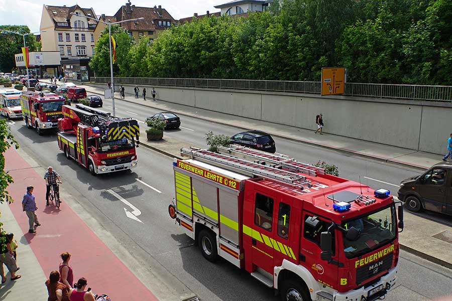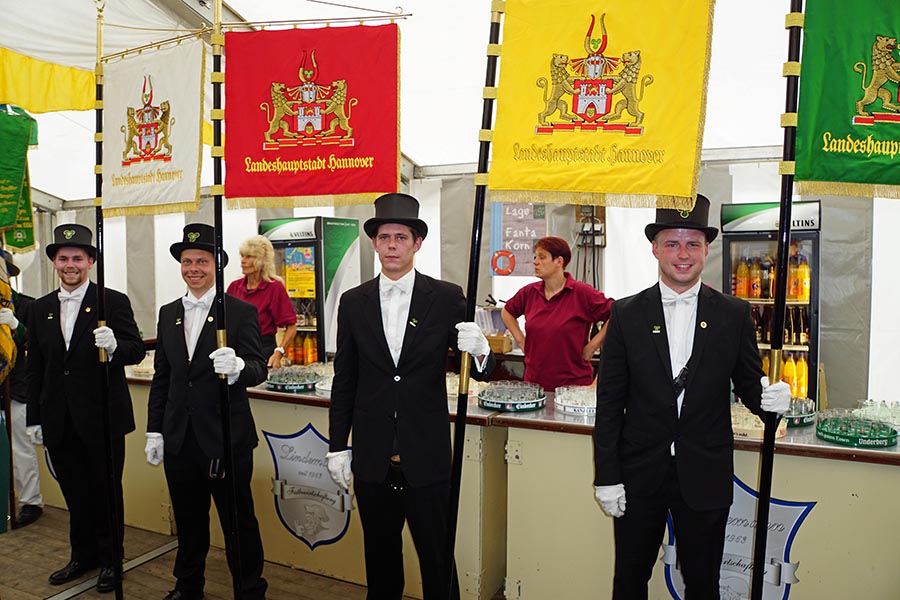 Am Zugende folgten noch drei Einsatzfahrzeuge der Lehrter Feuerwehr als "Besenwagen". Ausfälle waren aber im Verlauf des diesjährigen Schützenumzugs nicht zu vermelden, wenngleich am Festzelt angekommen die gefühlte Temperatur sicherlich die 30 Grad Celsius gut überschritten haben mochte. Entsprechend reichlich hatten die Servicemitarbeiter von Festwirt Peter Lindemann an den Getränketresen dann zu tun.