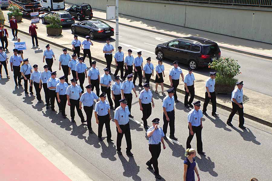 Vor den Mitgliedern der Freiwillige Feuerwehr Lehrte, denen angesichts der sommerlichen Temperaturen Marscherleichterung gegönnt wurde, folgten der hannoversche Schießsportclub Adlerhorst, dem Verein des Bruchmeisters Andreas Pieper.
