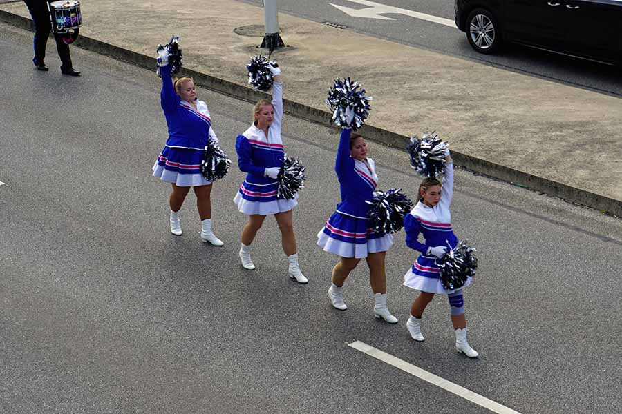 Das Fanfarencorps Alt Linden kam nicht nur musikalisch "gut rüber", mit vier Cheerleadern brachten die Alt-Lindener auch optisch einen eigenen besonderen Beitrag zum Umzug.