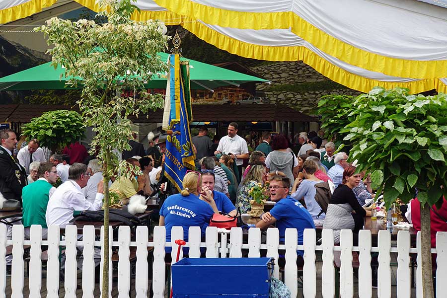 Ab 15:30 Uhr wurden die diesjährigen Majestäten mit einem großen Konzert der teilnehmenden Musik- und Spielmannszüge im Festzelt geehrt, bevor sich die Schützen und Ihre Gäste auch unter die Besucher des Festplatzes mischten.