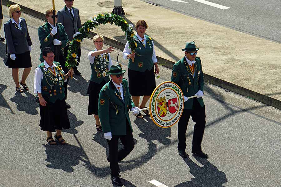 Auf Bürgermeister Klaus Sidortschuk, dem Schützencollegium und Mitglieder des Rates der Stadt Lehrte folgte die Stadtkönigin 2017 Gabriele Bode. Kreisvorstand Werner Bösche reihte sich an dieser Stelle mit den Kreiskönigen 2017 in den Zug ein, um so dem Lehrter Schützenfest die Referenz zu erweisen.