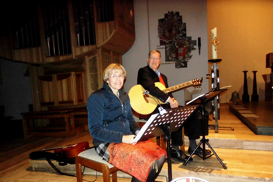 "Meine Zeit steht in deinen Händen, zu diesem Thema wollen wir uns in diesem Gottesdienst Gedanken machen. Wir werden zum Nachdenken gezwungen, denn der November mit seinen Gedenktagen zwingt uns dazu," führte Karin Lüke weiter aus. Petra und Bernhard Schulte begleiteten mit Flöten- und Gitarrenspiel und entsprechender meditativer Musik zwischen den Vorlesungen den Ablauf der Late Night-Andacht.