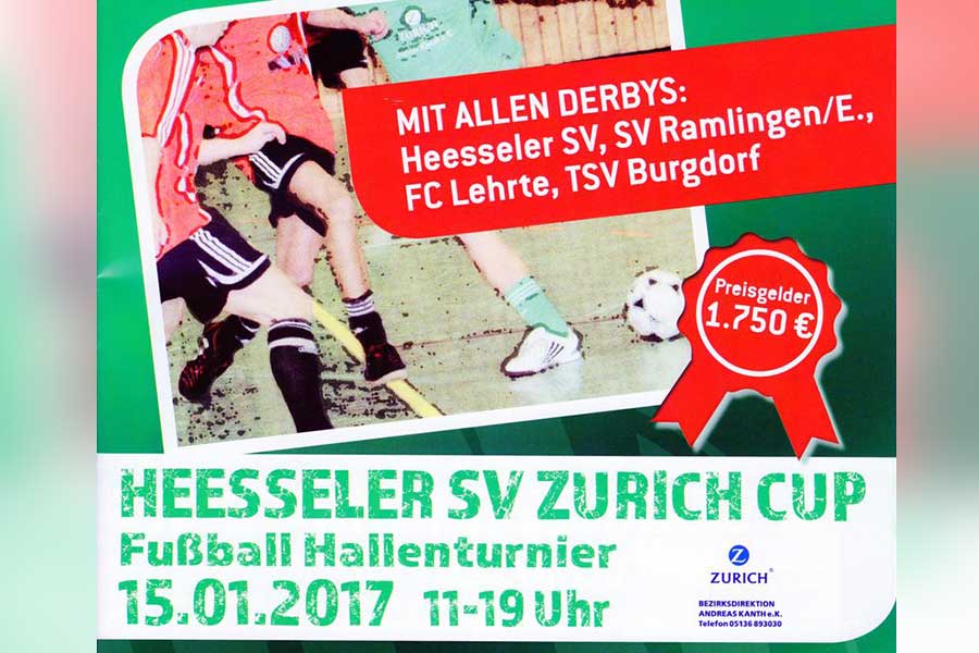 Der Förderverein des Hesseler SV und die 1. Fußball-Herrenmannschaft präsentieren auch 2018 ein Fußball-Highlight: 12 Teams von der Kreis- bis Oberliga bewerben sich um den begehrten Zurich-Cup, gestiftet von Hauptsponsor Andreas Kanth, Bezirksdirektor der Burgdorfer Niederlassung des Versicherungskonzerns. Preisgelder von insgesamt 1200 Euro bessern die Mannschafts-Kassen der vier besten Teams auf. Insbesondere zwischen den Nachbar-Teams TSV Burgdorf, FC Lehrte, Heesseler SV und dem SV Uetze 08 sind spannende Lokal-Derbys zu erwarten.