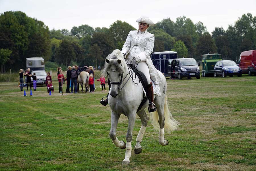 An der Aktionsfläche des Verein Burgdorfer Pferdeland e.V., als Mitausrichter des Burgdorfer Pferdemarktes, konnten wieder reichlich interessierte Zuschauer gezählt werden, die den Moderationen von Volker Hofmeister vom Verband der Pony- und Kleinpferdezüchter Hannover e.V. aufmerksam folgten; spätestens als Yvonne Döpke aus Heessel die Dressurdisziplinen ihres Pferdes demonstrierte.