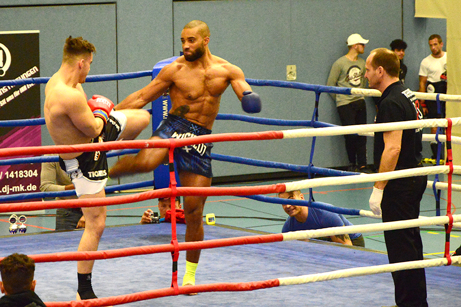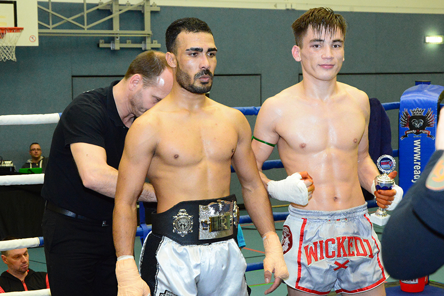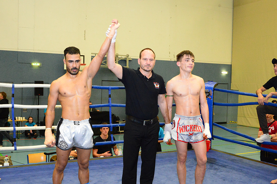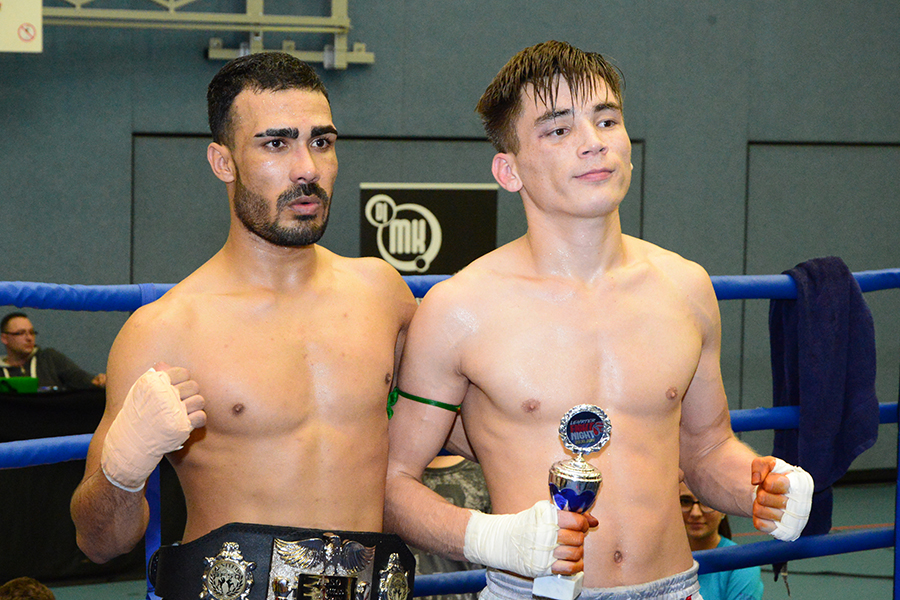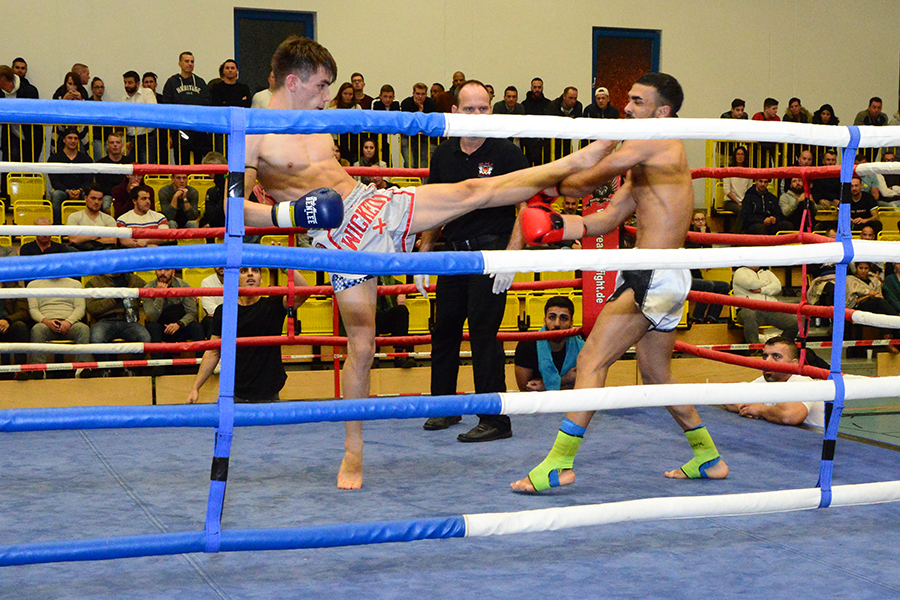 Die Ringrichter des ausführenden Verbandes WFM hatten wenig zu tun: Sportliche Fairness und auch freundschaftliches Miteinander prägten diesen Abend, auch wenn es in den Kämpfen nur einen Sieger geben konnte. So auch im Finale, als der Deutsche Meister im Kickboxen K1 bis 63 Kilogramm, der 19-Jährige Yasin Taheri vom Ferhat Chakers Fight aus Oldenburg, auf den 18-Jährigen Najib Nazari von den 8 Weapons aus Leipzig traf. Deutlich zeigte der Deutsche Meister in diesem Titelkampf seine Klasse und bereits in der ersten Runde des auf fünf Mal zwei Minuten angesetzten Kampfes flog das Handtuch: Der Leipziger gab auf und der Deutsche Meister verteidigte seinen Titel.