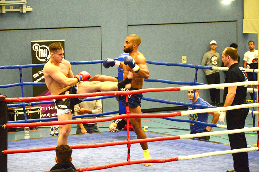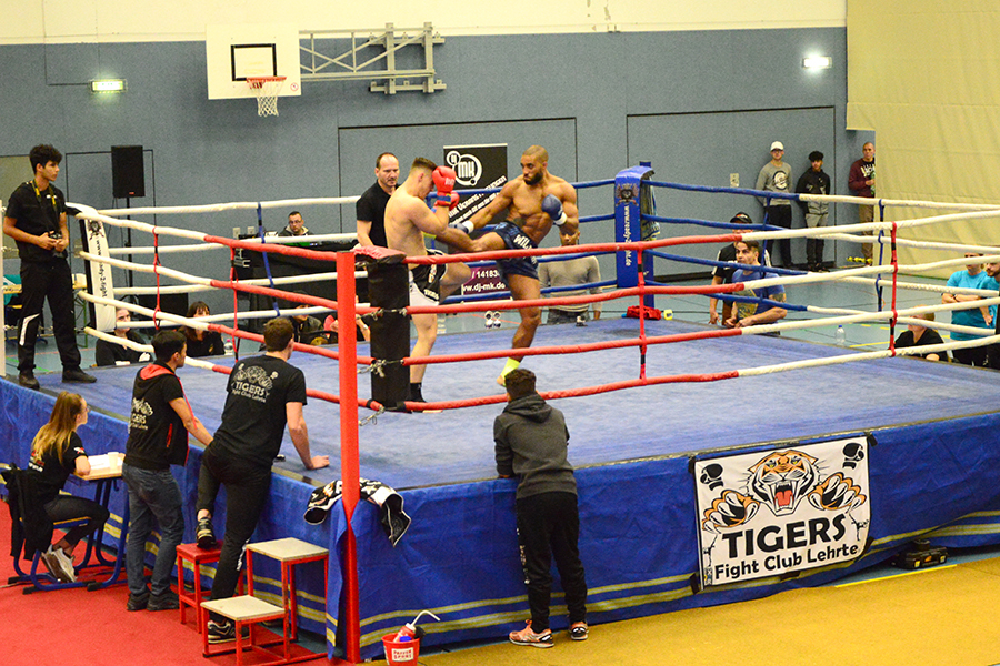 Die Stimmung auf den Rängen war vor allem bei den Lokalmatadoren auf dem Höhepunkt. Mit dem 17-Jährigen Wissam Shamo, den beiden 19-Jährigen Ali Mussavi und Alexander Kovalenko sowie Calvin Könnecker (20) schickte der Tigers Fight Club Lehrte vier Akteure in den Ring in der Vierfeldhalle. Und auch hier überzeugten die Lehrter: Drei von vier Kämpfen konnten gewonnen werden.