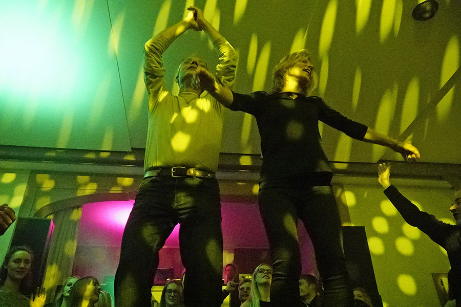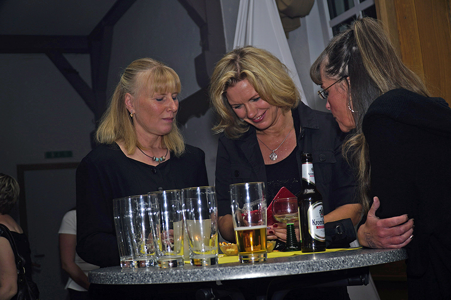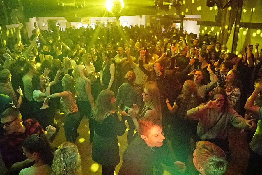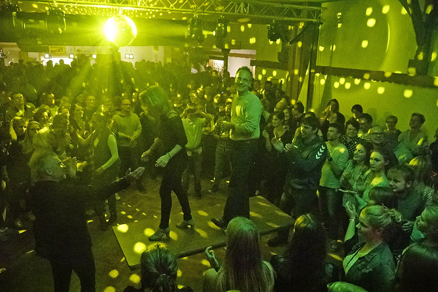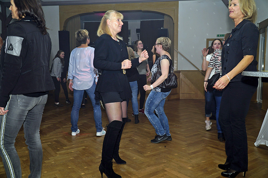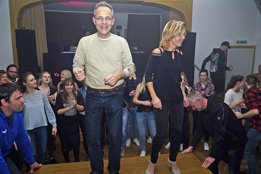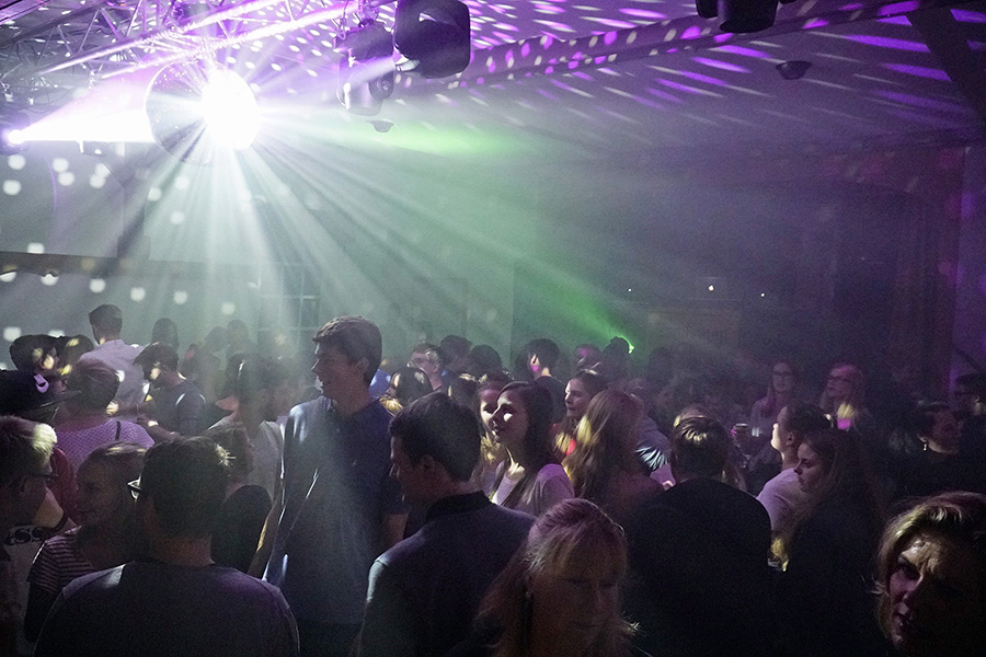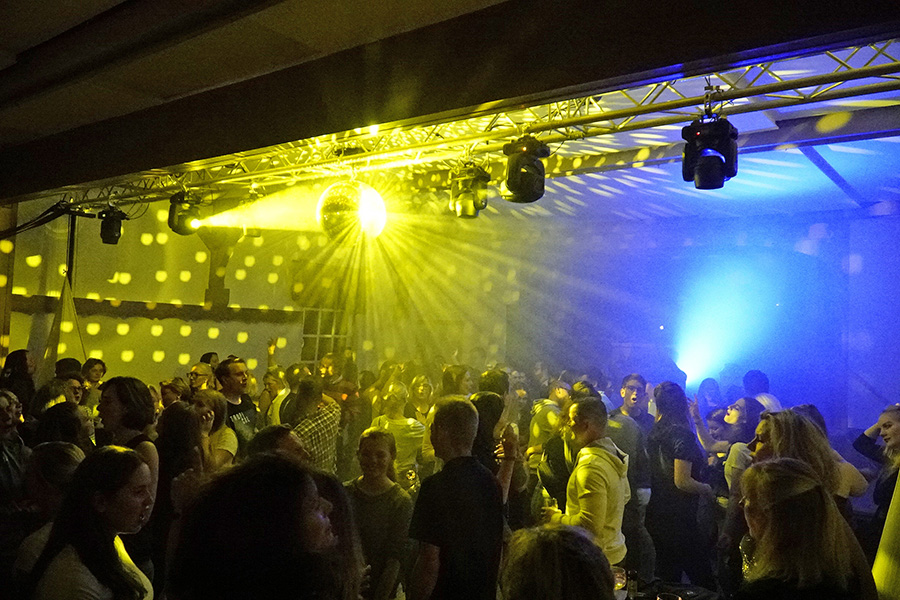 Während sich ab 21 Uhr der Saal stetig bis zum "Nicht-mehr-Umfallen-können" füllte, das Gastro-Team hinter dem nicht allzu weit entfernten Tresen alle Hände voll zu tun hatte, bot DJ Sascha mit Unterstützung von Alex eine beeindruckende Lasershow, mächtig Sound und Nebel, sowie natürlich eine passende Mischung aus Schlagern, Rock und Pop und sorgte so dafür, dass der 100 Jahren alte Dielenboden durchgängig gehörig beansprucht wurde.