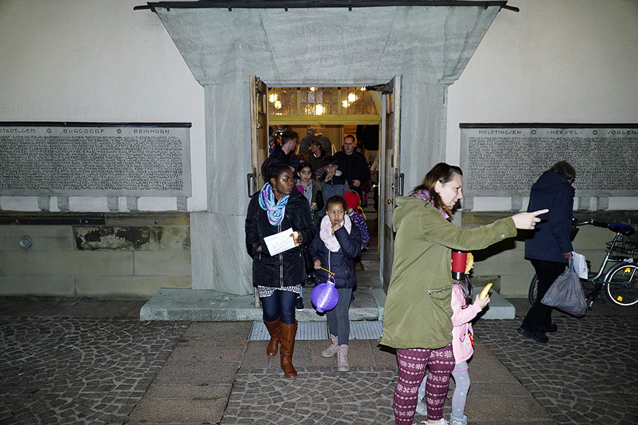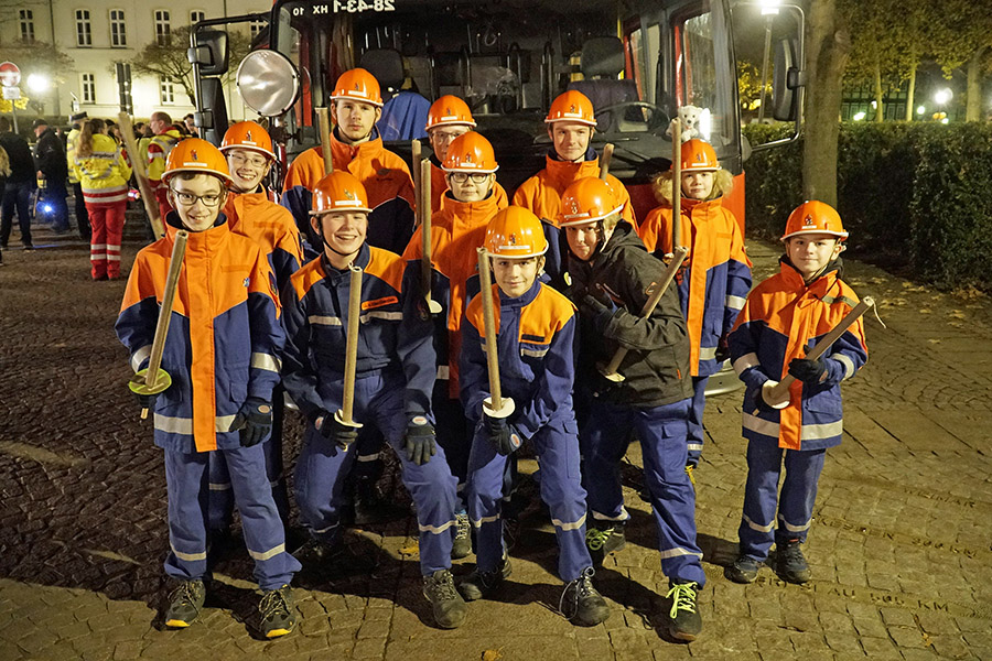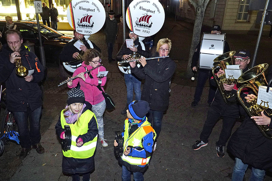 Nichtsdestotrotz fand sich ein langer Laternenumzug zusammen, der verkehrsregelnd von Jörg Windfuhr, dem Kontaktbeamten der Burgdorfer Polizei, von den Fackelträger der Jugendfeuerwehr Burgdorf und musikalisch von den "Wikingern" begleitet den Weg zur St. Nikolaus Kirche.