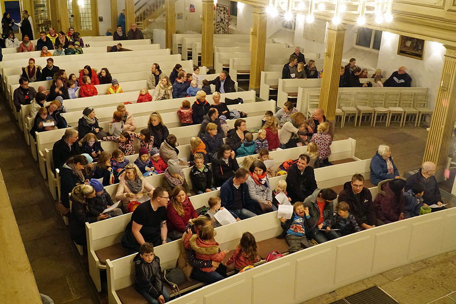 Interaktiv trug er den gut 100 Kindern in der St. Pankratius Kirche die bekannte Geschichte um den Heilig gesprochenen Martin vor. Ob Pferdegetrappel, ob Frieren, Wärmegefühl, eisiger Wind, dem der bekannte Bettler hungrig und frierend ausgesetzt war, die Kinder in der Kirche begleiteten den Vortrag von Stefan Horn immer mit den zum Ereignis passenden Geräuschen.