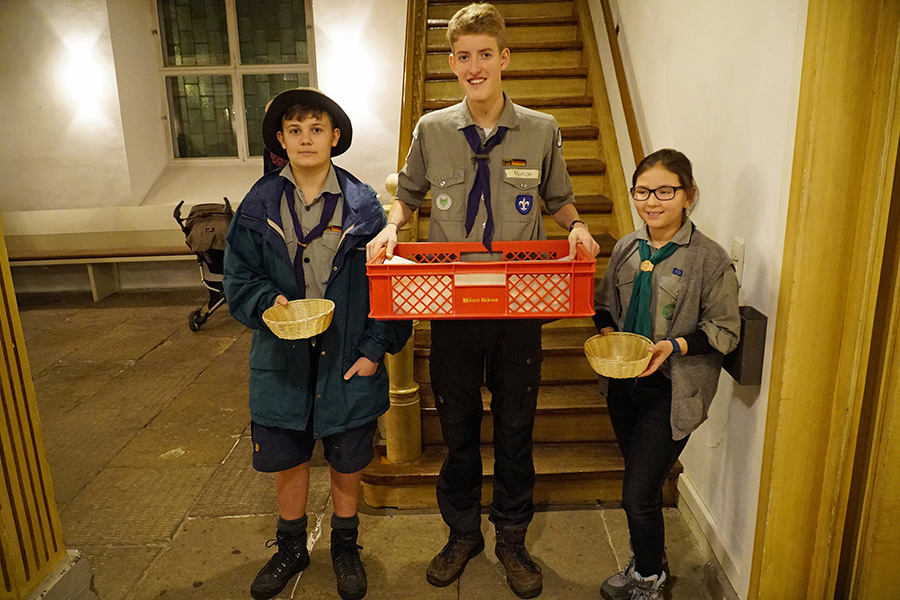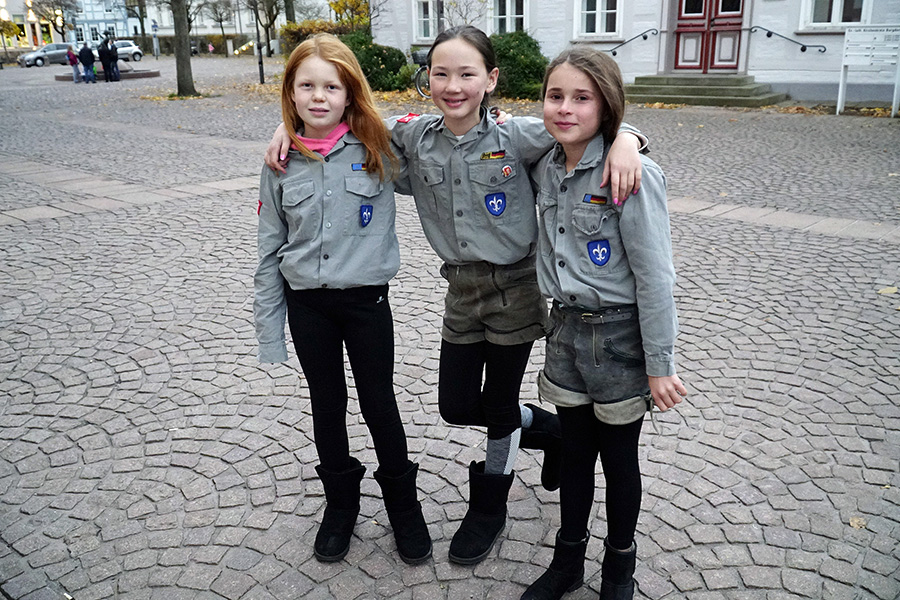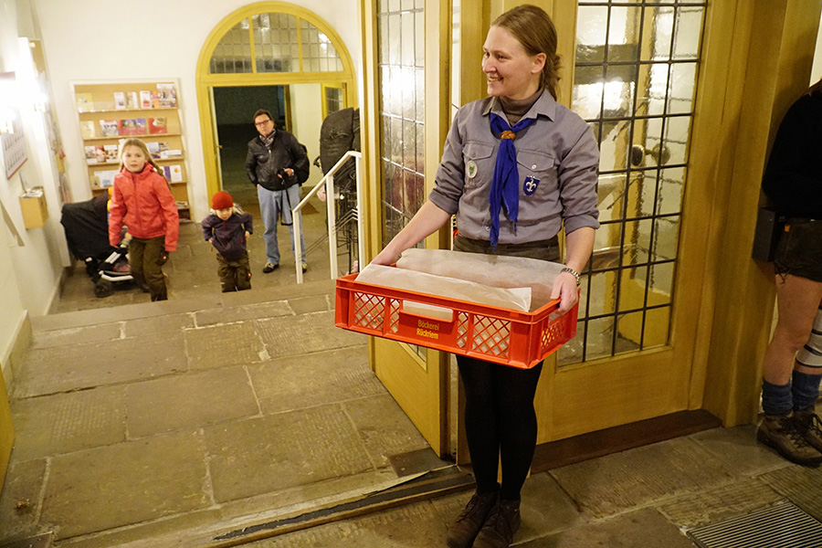 Zum Abschluss der Andacht verteilten die Pfadfinder vom Stamm der Magdalena von Bentheim, eine Untergruppierung der Christliche Pfadfinderschaft Deutschlands e.V. (CPD) in der katholischen Kirche, an die Andachtsgesellschaft frische von der Burgdorfer Bäckerei Rückriem gebackene Hörnchen, mit dem Anspruch, diese im Sinn der Mantelteilung miteinander zu teilen. Leider fand sich für den seit Jahren ökumenisch geübten Weg von der St. Pankratius Kirche zur St. Nikolaus Kirche in diesem Jahr kein Pferd und kein bemäntelter Reiter.